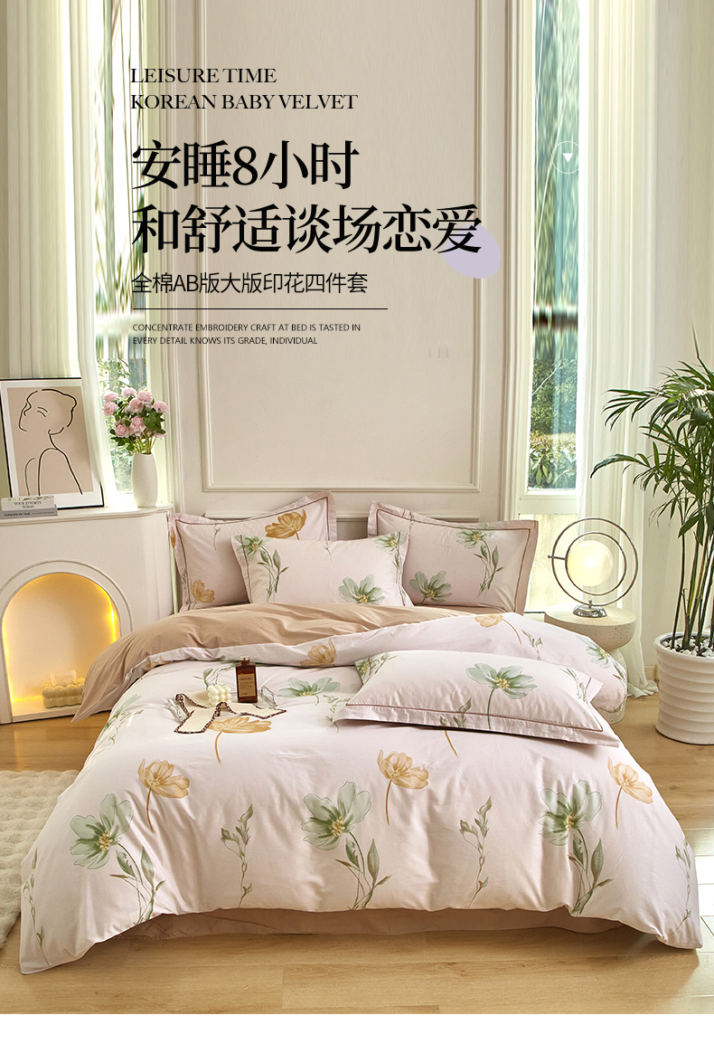 金纱玉纺家纺 2024新款全棉大版印花13372四件套 幽香恋曲,幽香恋曲