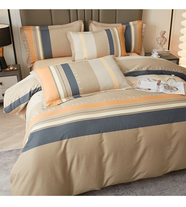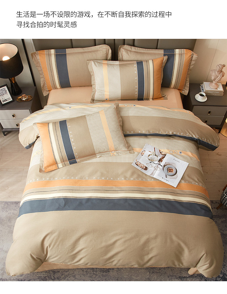 商品名称:金纱玉纺家纺 2023新款全棉大版印花13372四件套 凯旋门--咖