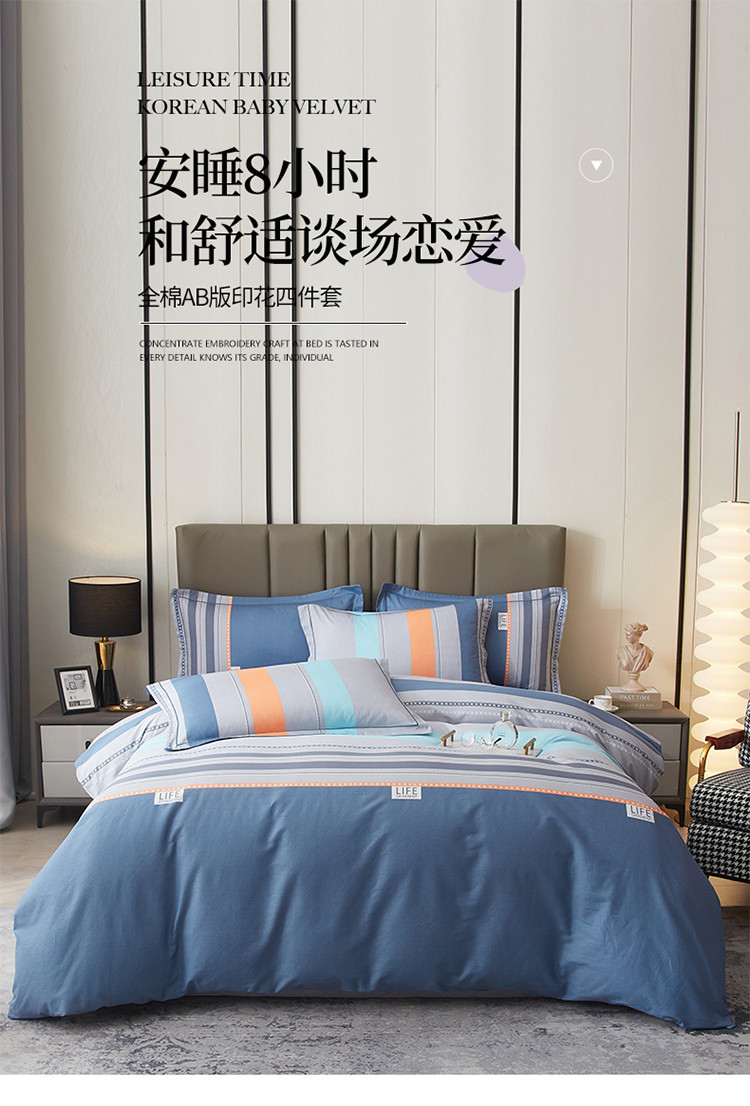 金纱玉纺家纺 2023新款全棉大版印花13372四件套 莫比尔--兰