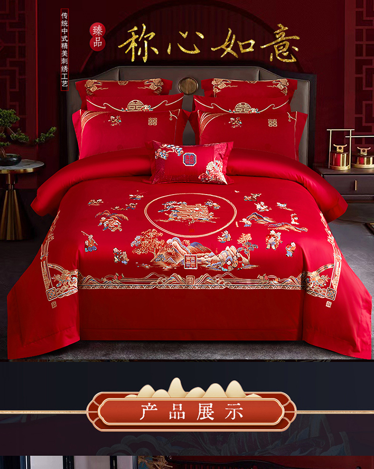 商品名称:蒂爵 全棉纯棉传统中式精美刺绣工艺四件套-称心如意