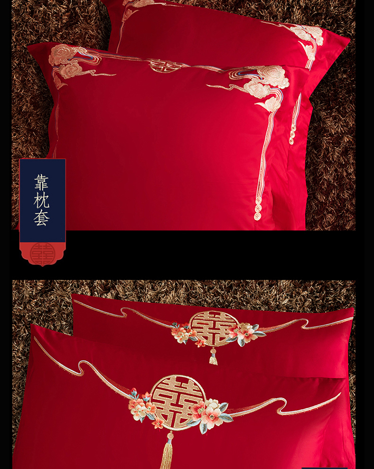 (总)蒂爵 2025新款婚庆长绒棉时尚小红书爆款刺绣婚庆四件套多件套-提花款,欢天喜地,玫瑰之恋,喜福临门,喜上眉梢,幸福嫁到