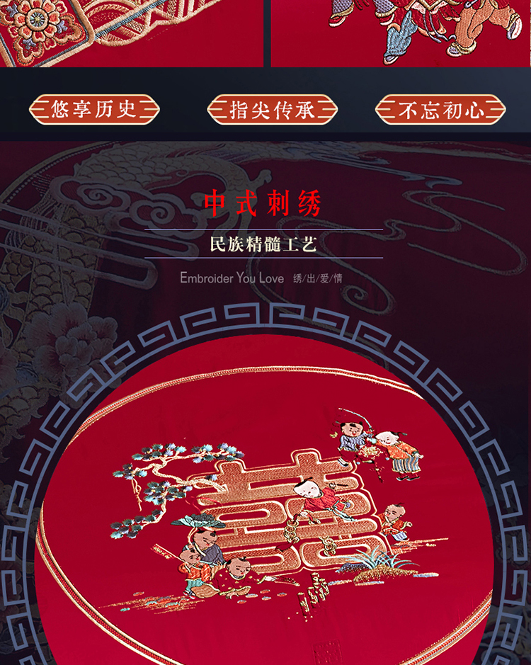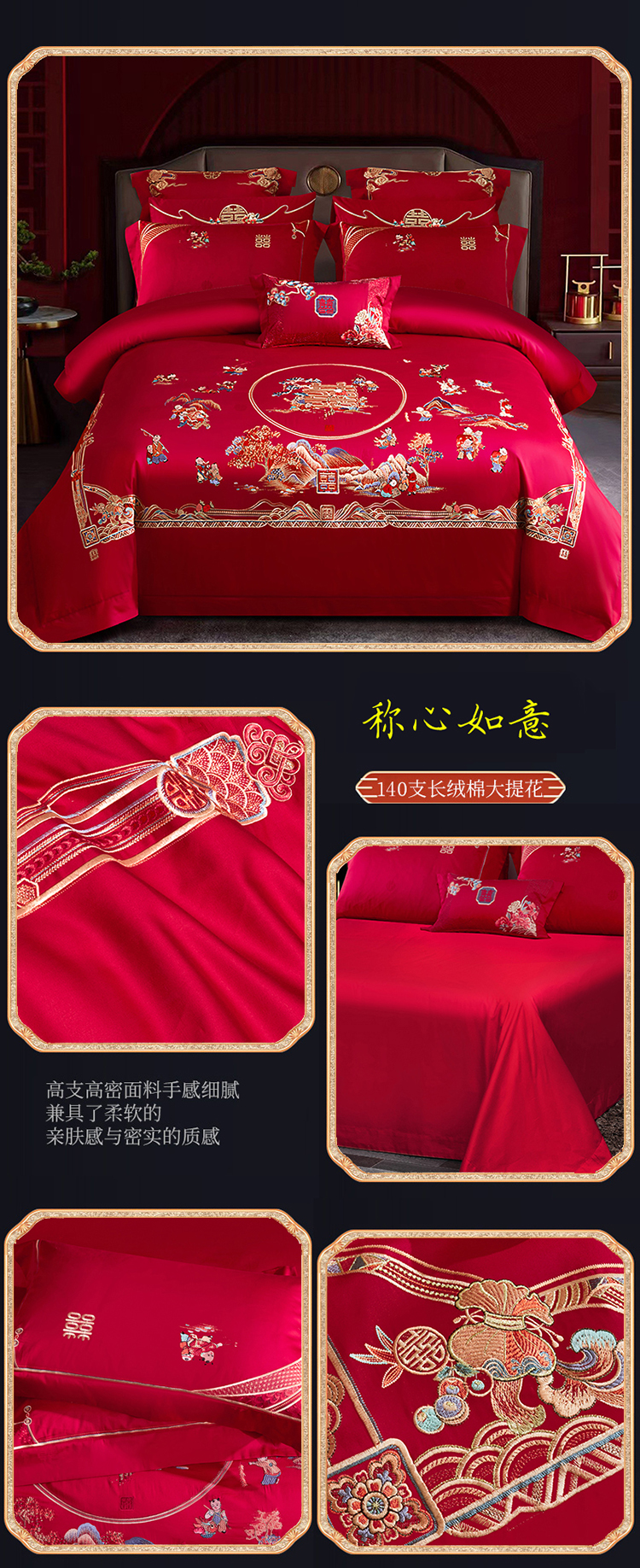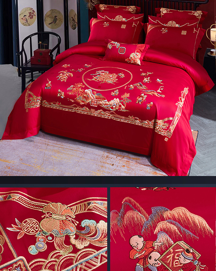 (总)蒂爵 全棉纯棉长绒棉大绣花婚庆四件套,百喜纳福,百子添福,多子多福,锦绣良缘,龙凤添喜,盛世花开