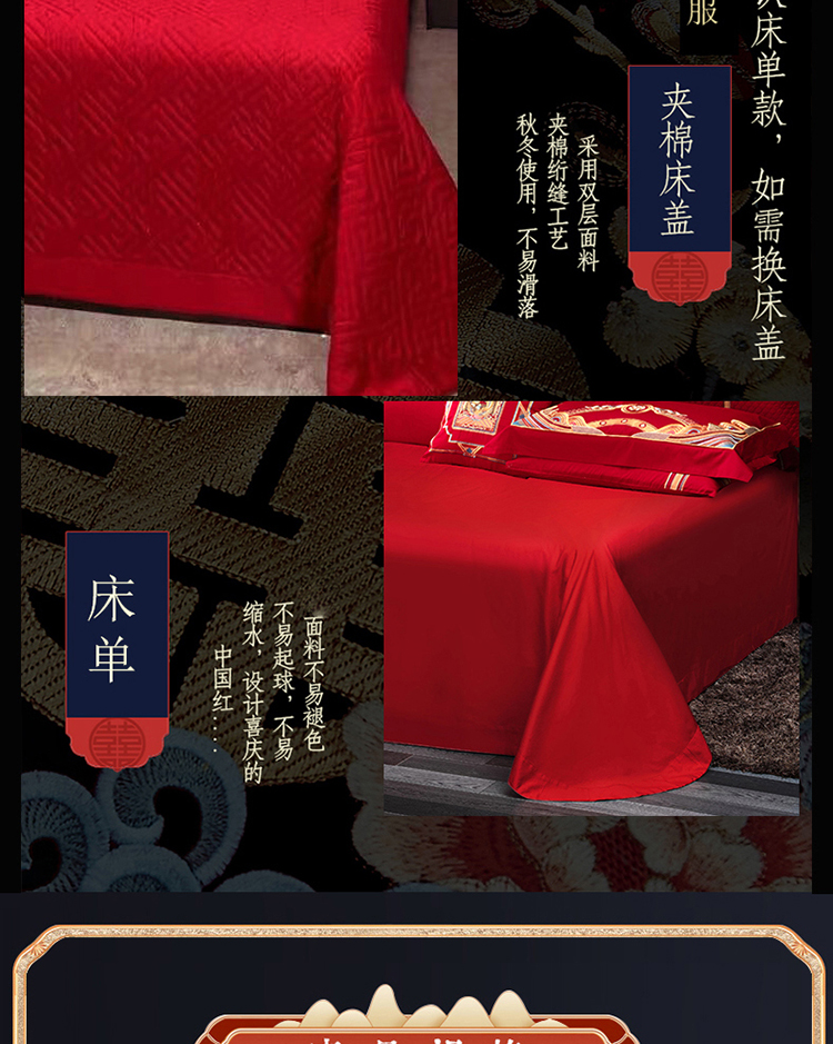 (总)蒂爵 全棉纯棉长绒棉时尚新中式婚庆四件套多件套,春花秋月,春暖花开,开门迎喜,龙吟凤舞,喜爱,一世良缘,真爱一生,钟爱一生