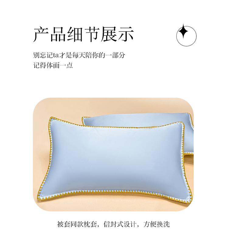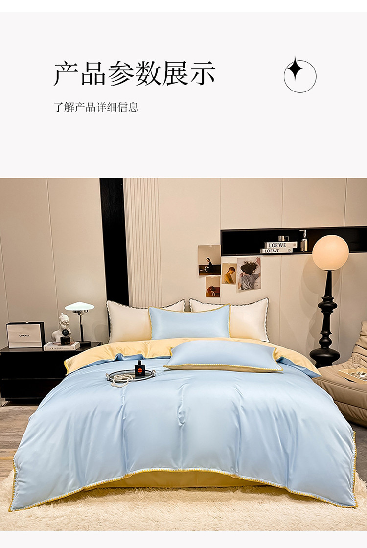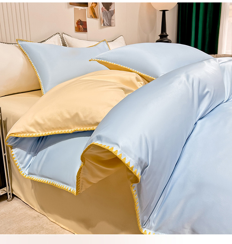 商品名称:艾米家居 2025新款水洗真丝贝壳边系列四件套 蓝+黄