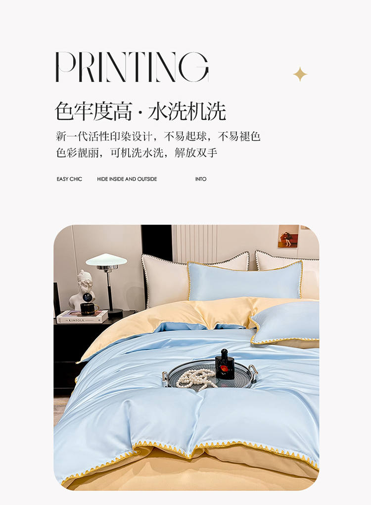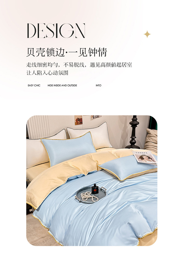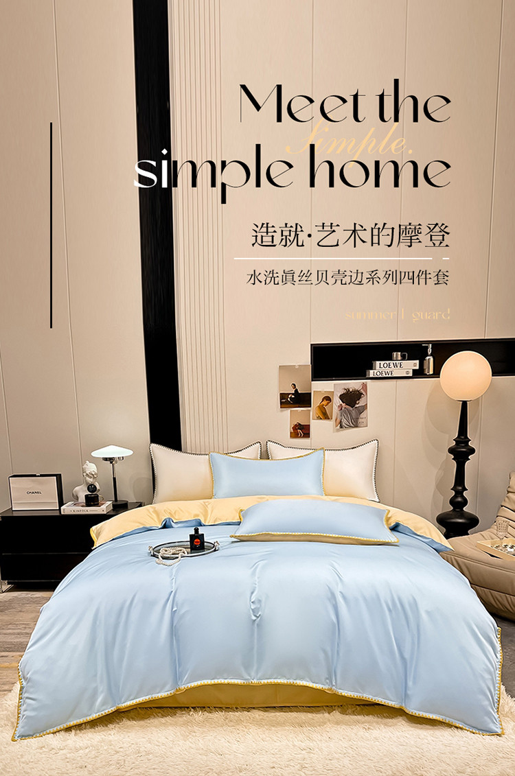 (总)艾米家居 2025新款水洗真丝贝壳边系列四件套,白,白+粉,豆沙,豆沙+蓝,黄,黄+橘色,灰色,蓝+黄,浅粉,水绿,天蓝