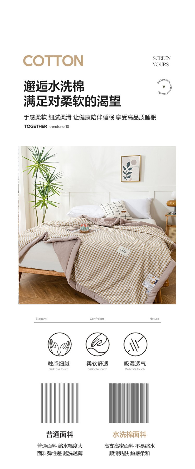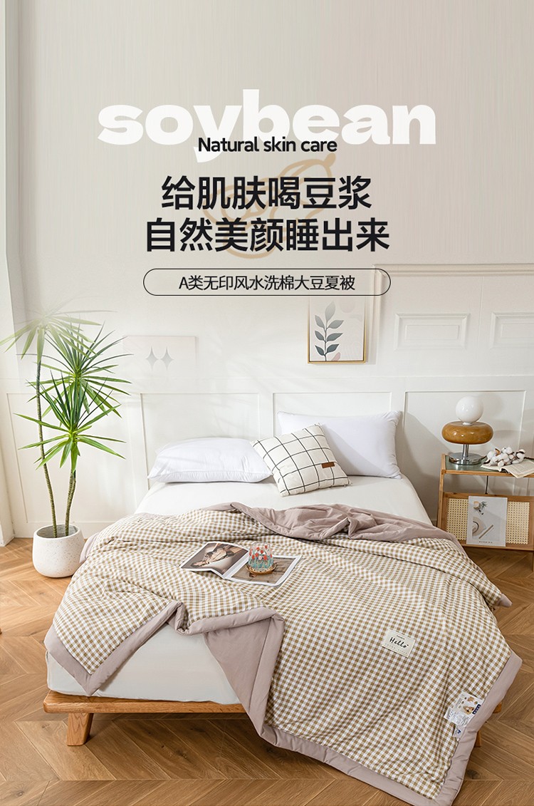 (总)森林人 2024新款A类无印风水洗棉大豆被夏被夏凉被 空调被,薄荷绿,宾利蓝,豆沙,粉小格,咖大格,咖小格,卡其,蓝大格,柠檬黄,牛仔蓝,浅蓝小格,绅士灰,条纹咖,条纹蓝,条纹玉,优雅玉,珍珠白