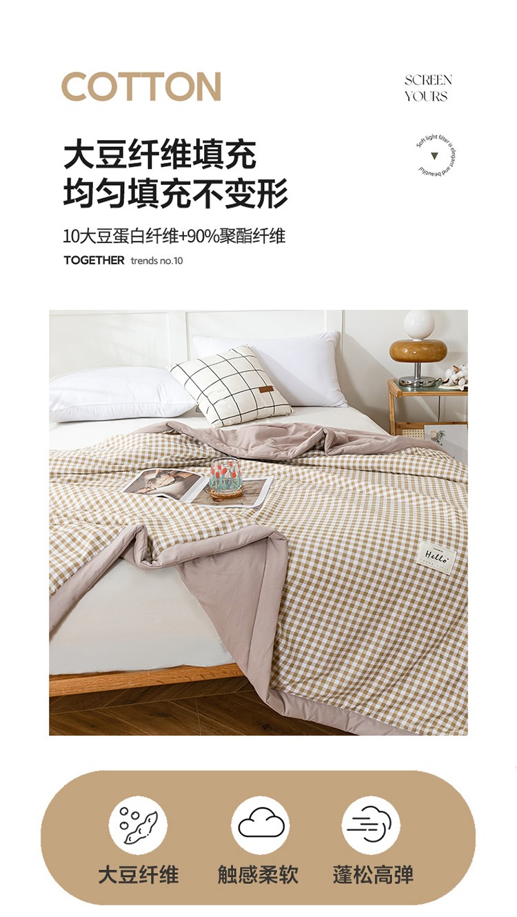 商品名称:森林人 2023新款A类无印风水洗棉大豆夏被 咖小格