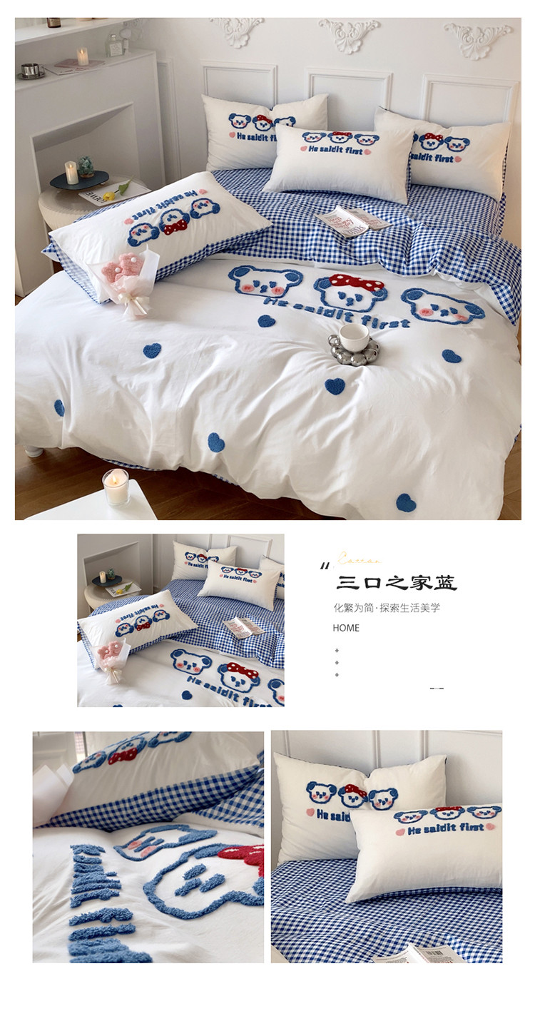 (总)三朵家纺 2026新款ins风全棉纯棉水洗棉少女系四件套-玛卡龙系列,马卡龙-葱绿,马卡龙-淡粉,马卡龙-粉绿,马卡龙-米咖,马卡龙-米蓝,马卡龙-浅紫,马卡龙-蔚蓝,马卡龙-薰衣草