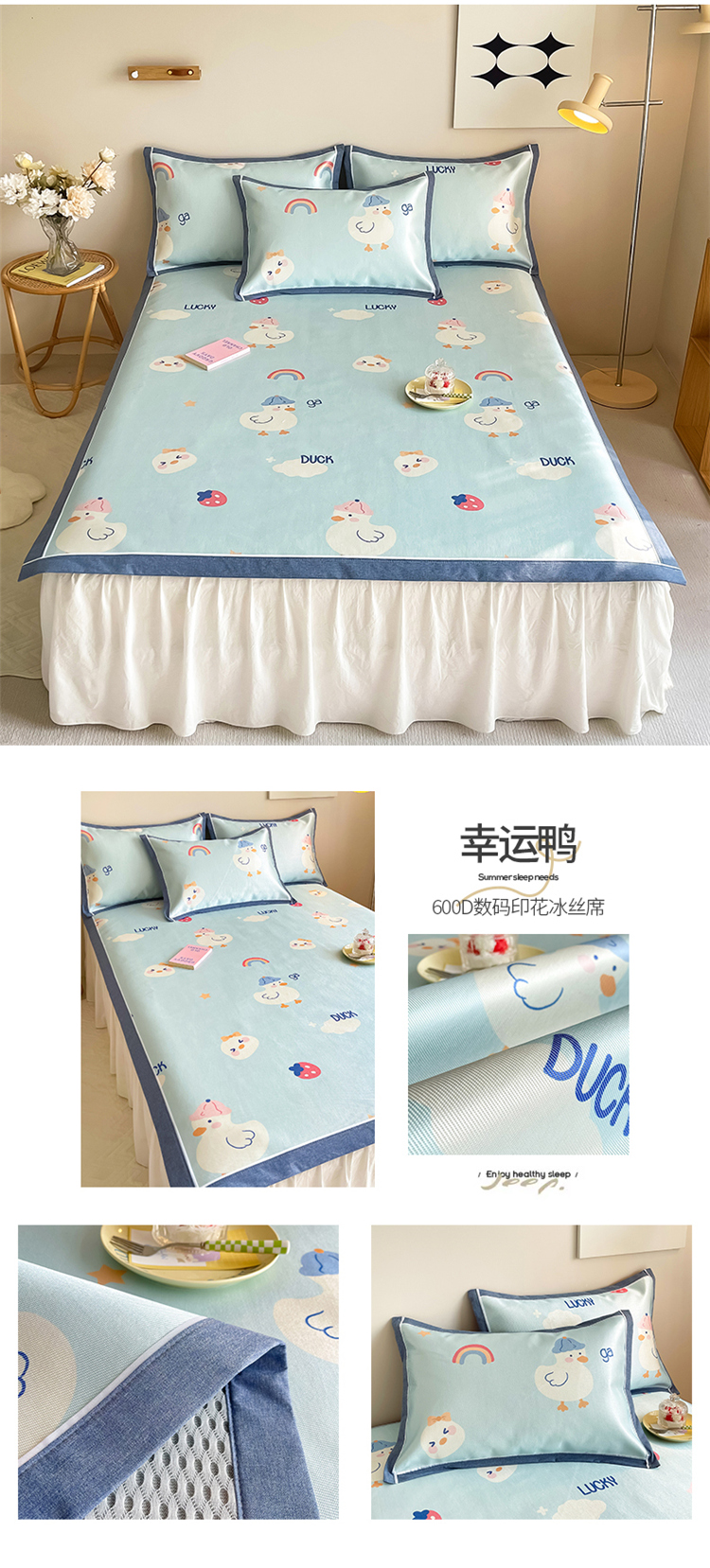 商品名称:懒猫 2024新款600D数码印花冰丝席 幸运鸭