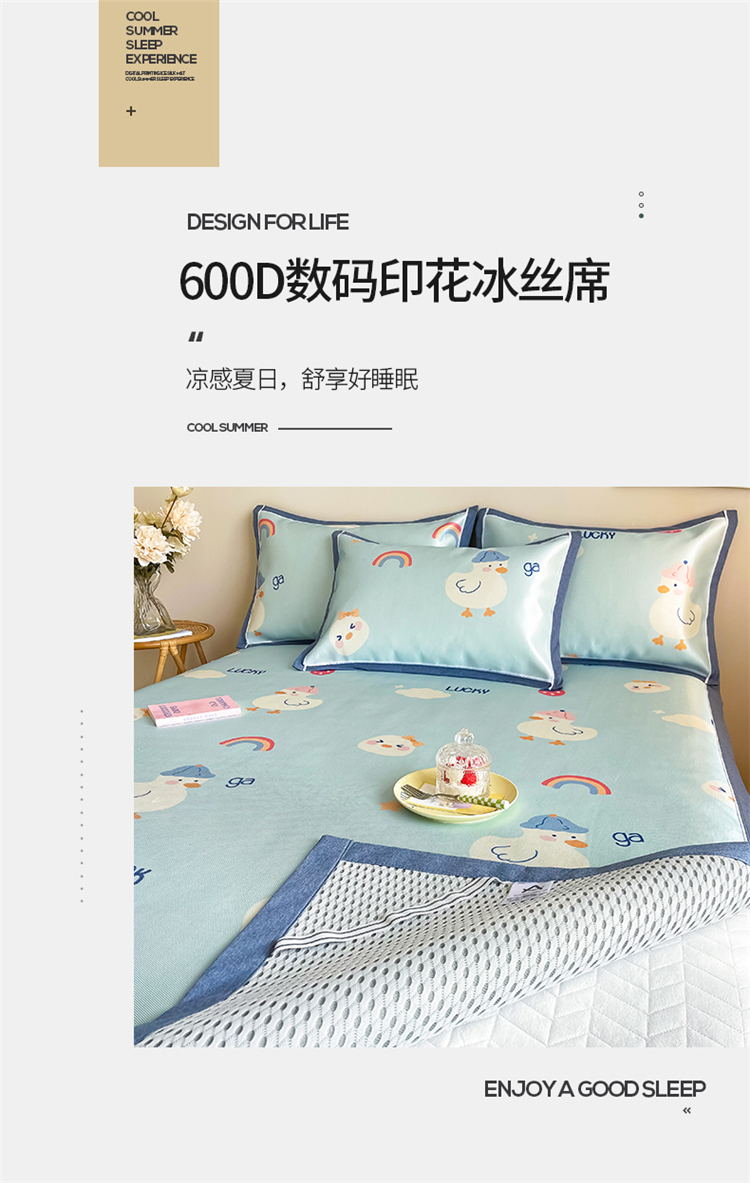 懒猫 2024新款600D数码印花冰丝席 幸运鸭