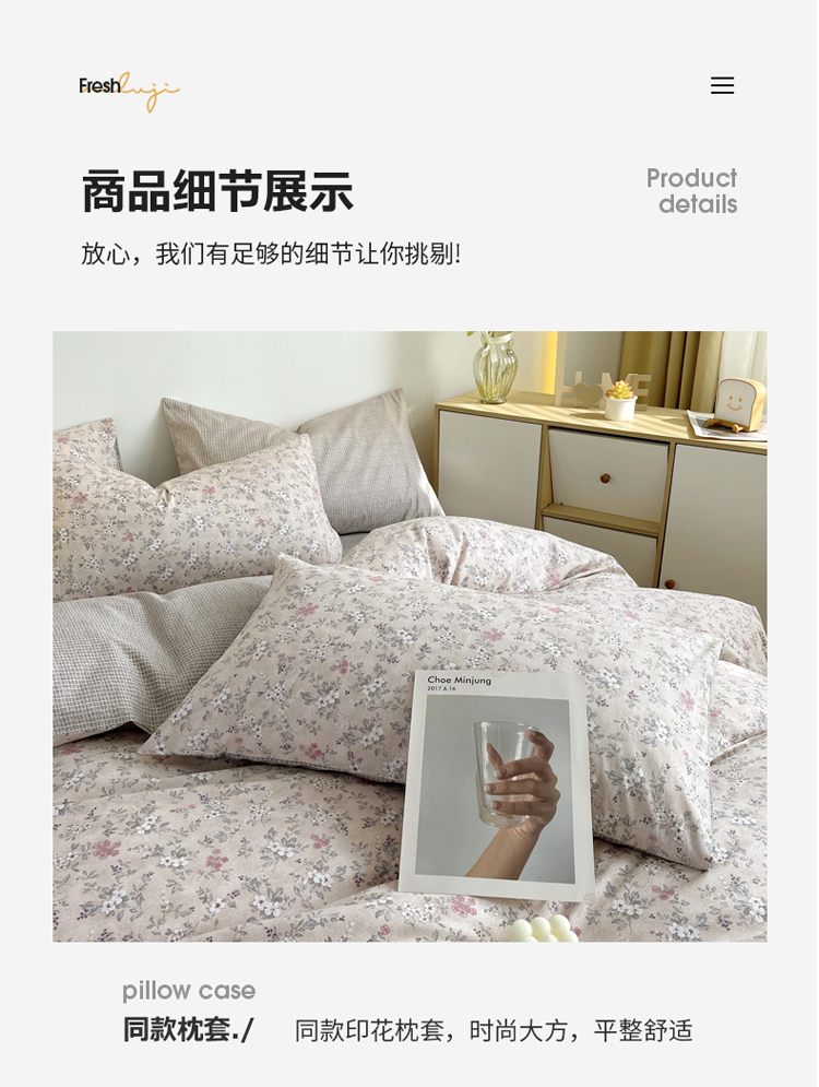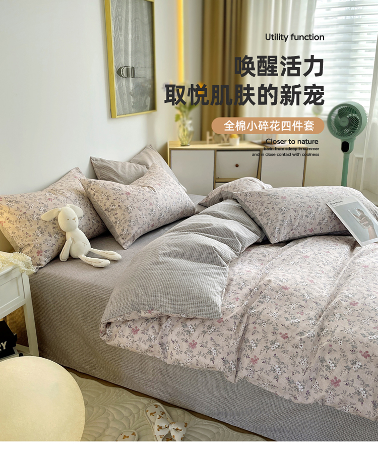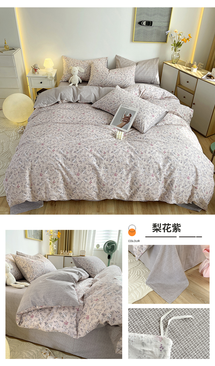 商品名称:千朵 2023新款13372全棉印花四件套 梨花紫