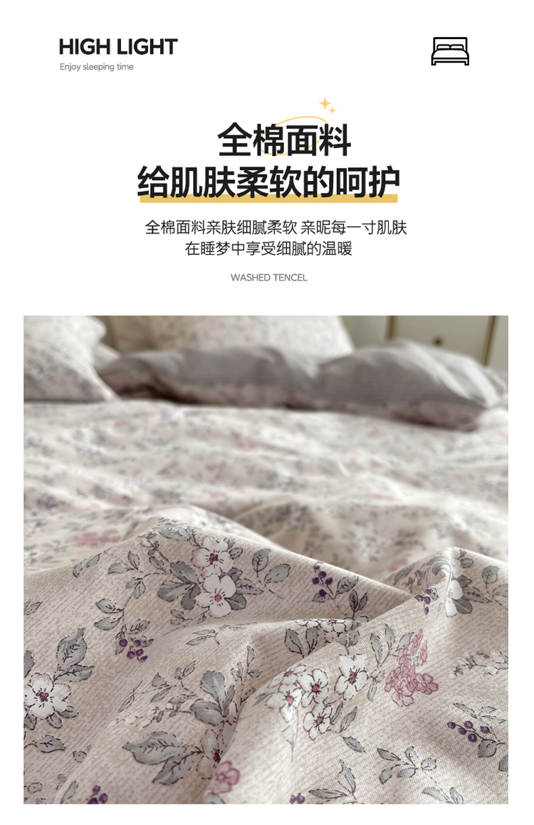 千朵 2023新款13372全棉印花四件套 梨花紫
