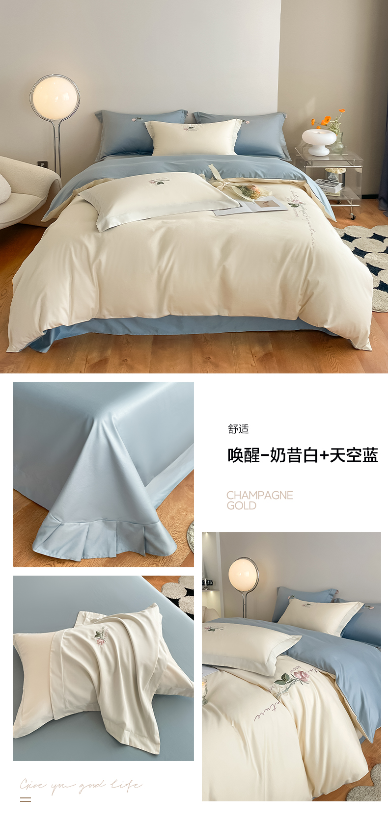 (总)秀色家纺 2025新款轻奢60支贡缎长绒纯棉四件套全棉简约清新刺绣花被套床单高级感,唤醒-奶昔白+茱萸粉,唤醒-天空蓝+茱萸粉,唤醒-奶昔白+天空蓝,唤醒-奶昔白+香槟金,唤醒-茱萸粉+烟墨灰,奶昔白+丁香,奶昔白+莺茶绿,茱萸粉+丁香,莺茶绿+香槟金,香槟金+烟墨灰