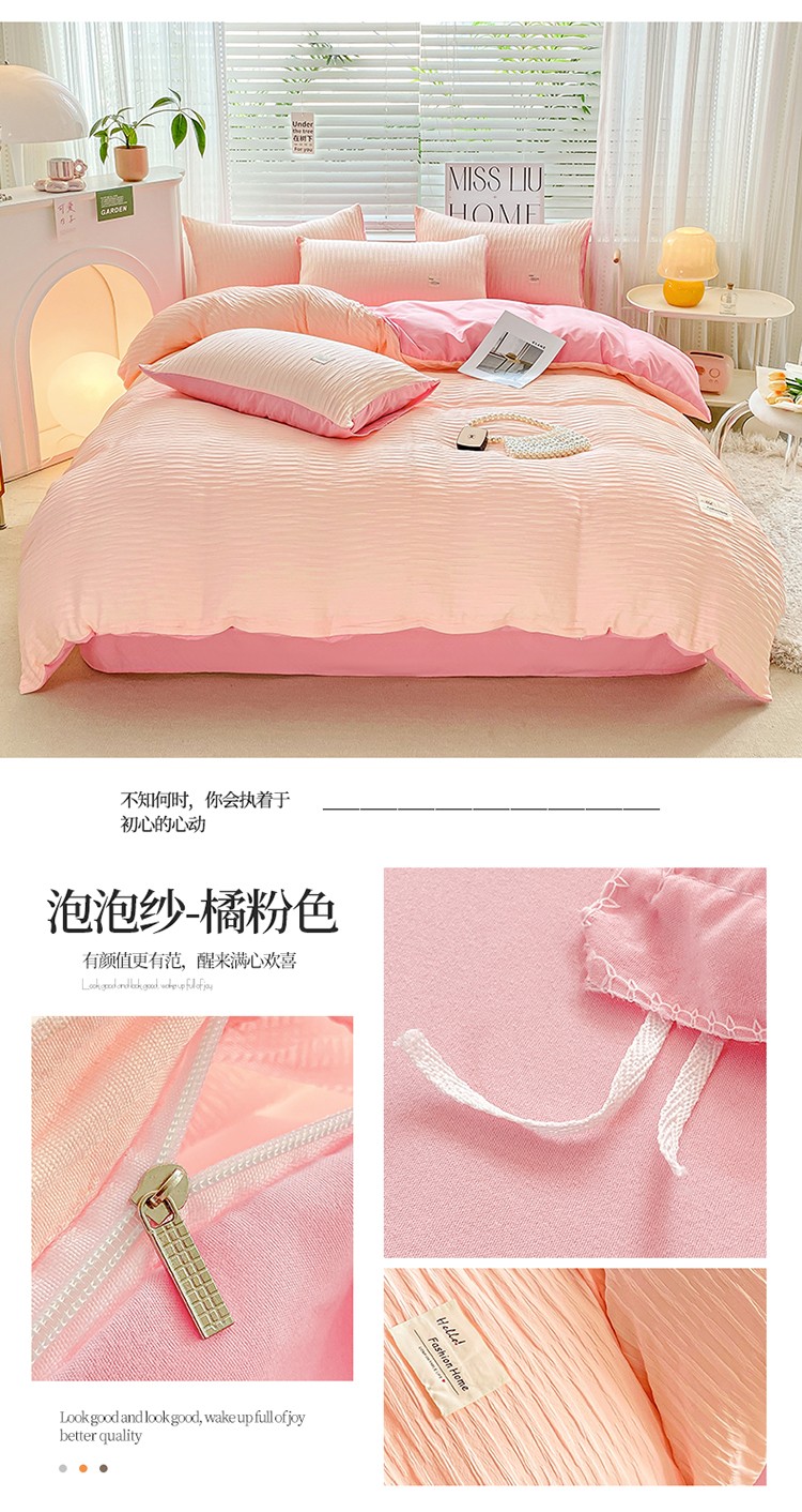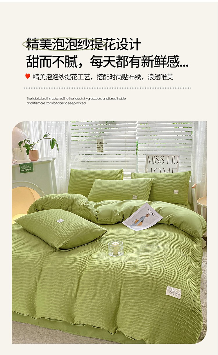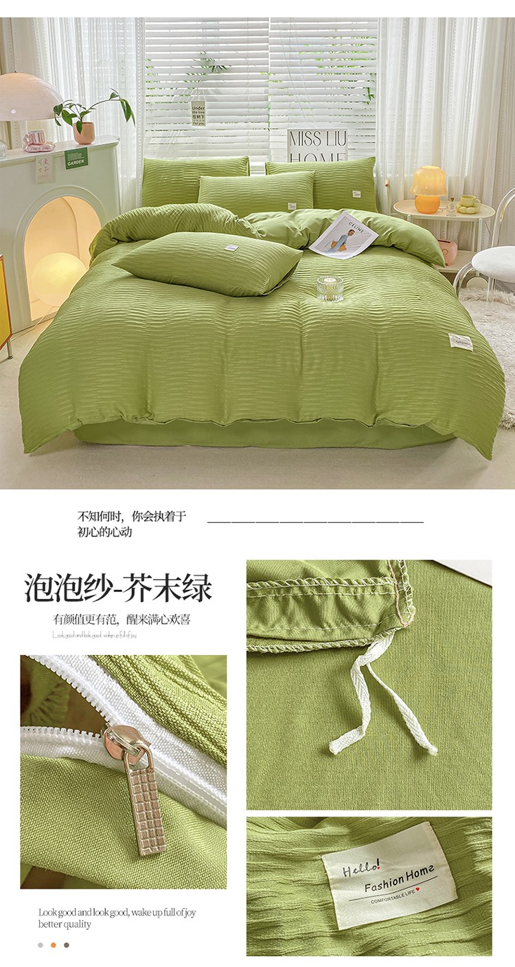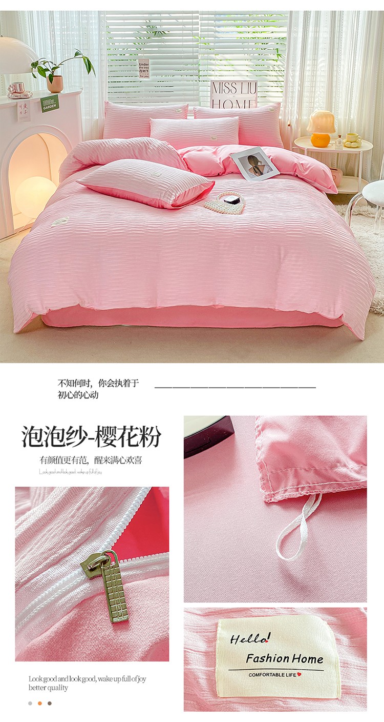 商品名称:红日子 2023新款韩版泡泡纱提花水洗棉纯色四件套 泡泡纱-紫薯色