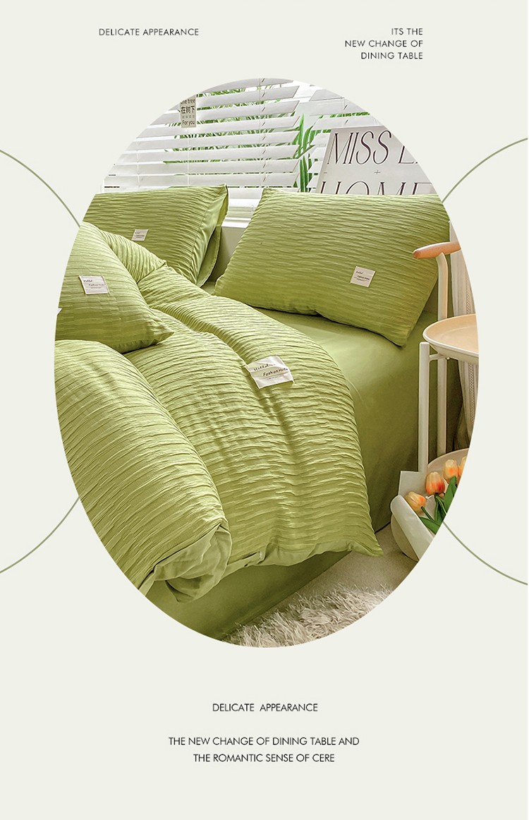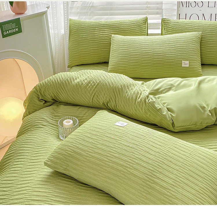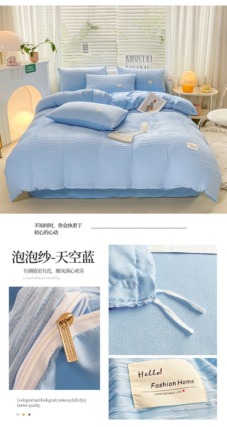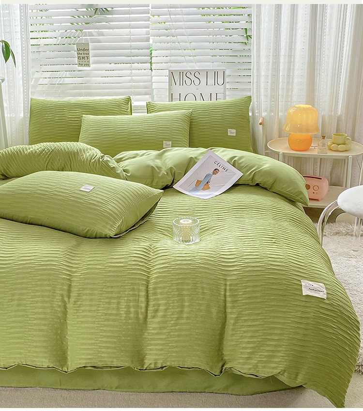 商品名称:红日子 2023新款韩版泡泡纱提花水洗棉纯色四件套 泡泡纱-紫薯色