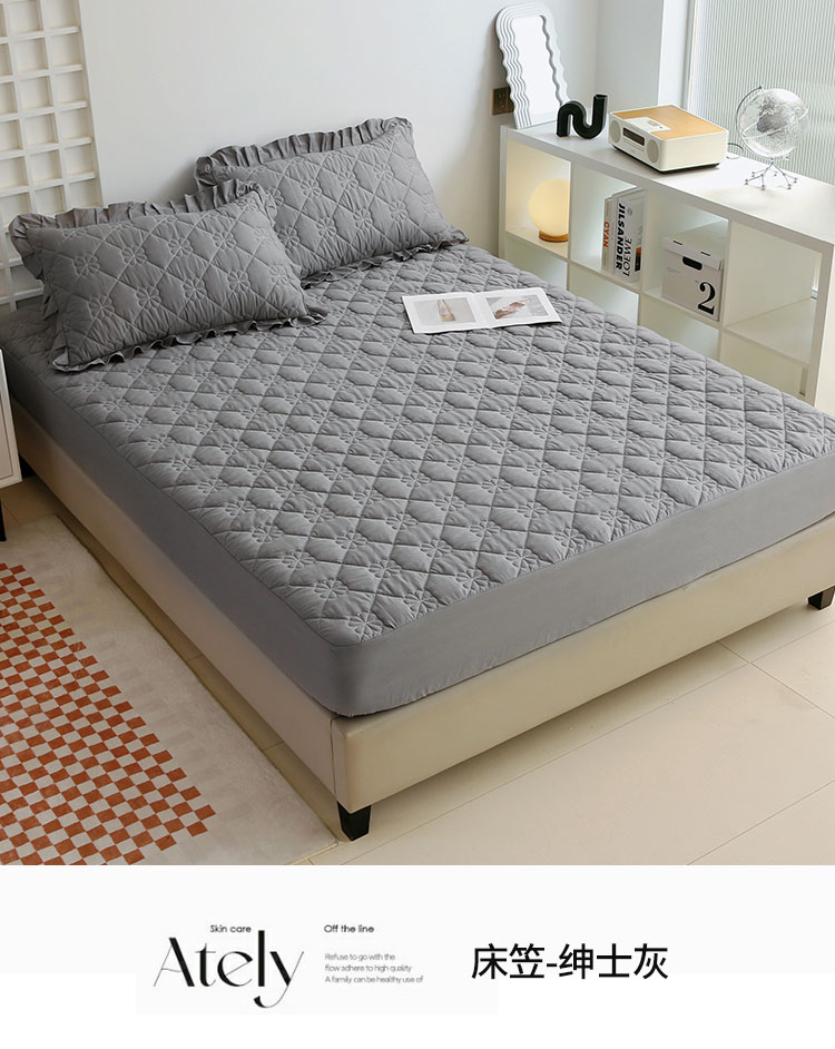 情煊 2023新款全棉夹棉纯色印花床笠款(可定制尺寸) 床笠-绅士灰
