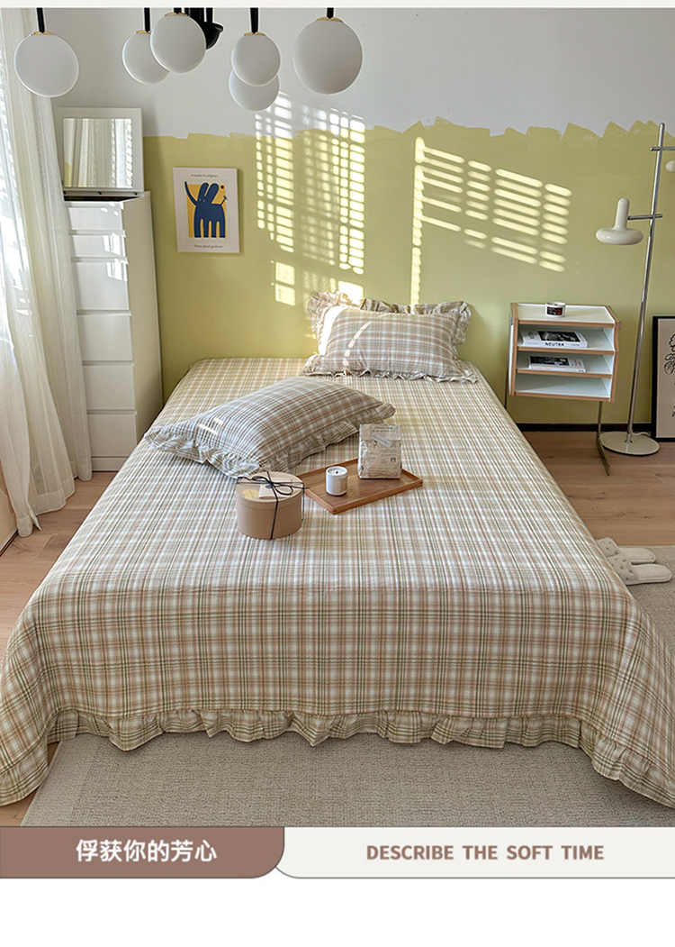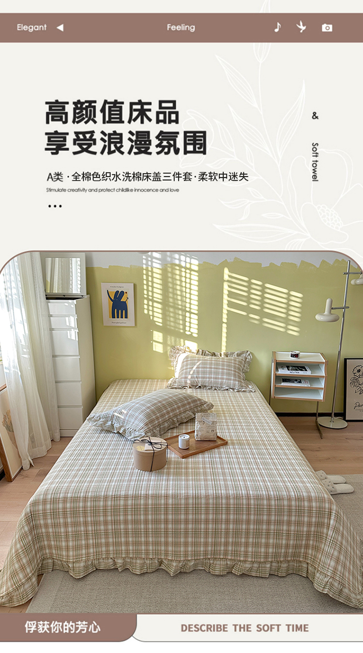 琳可家居 2023新款A类韩版色织全棉水洗棉单被套 沁绿格