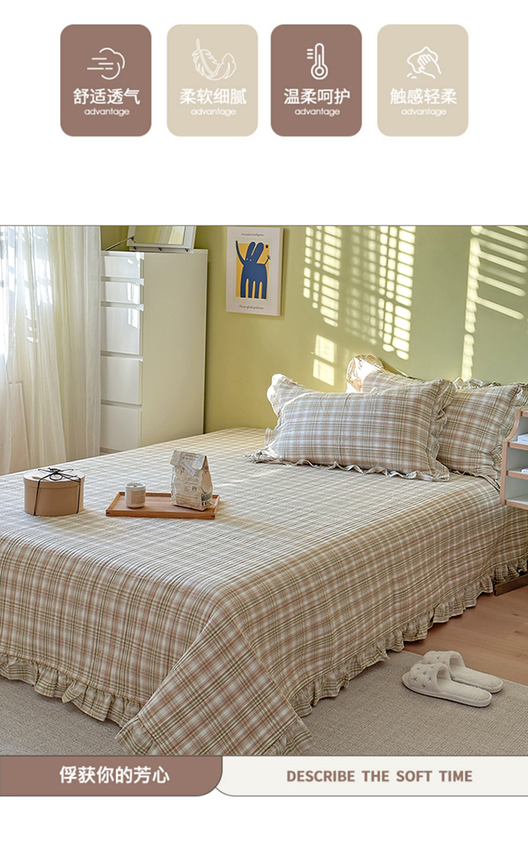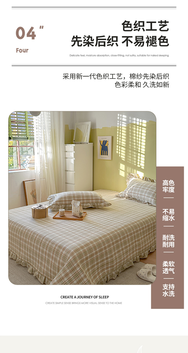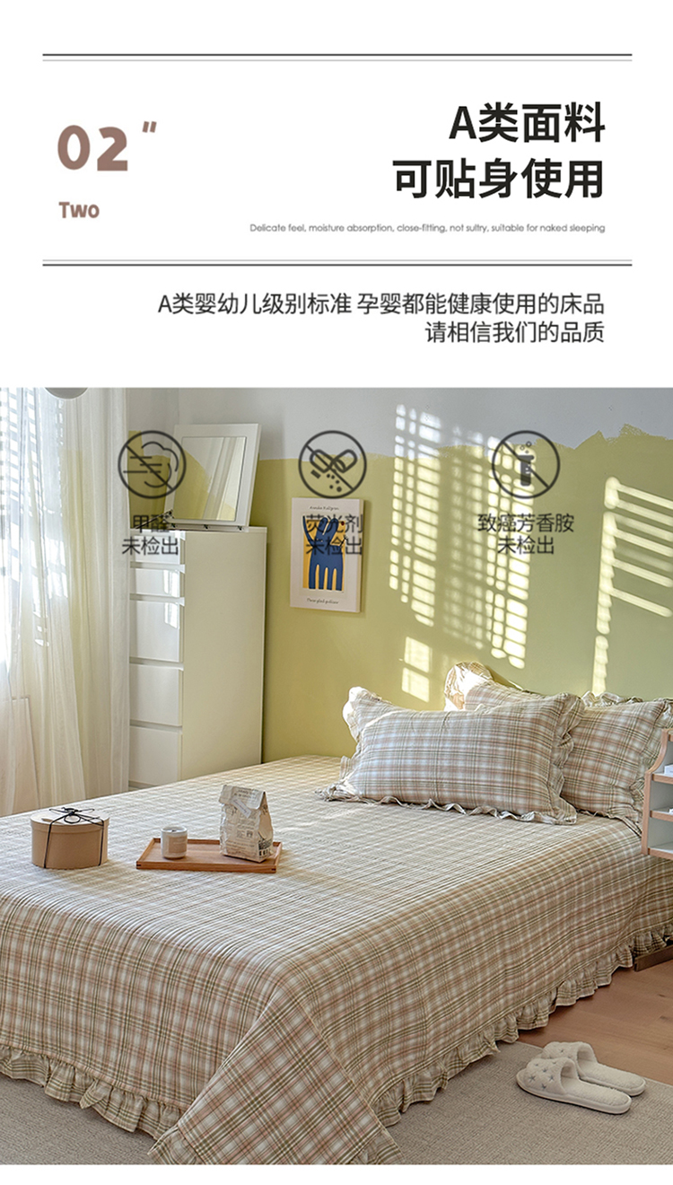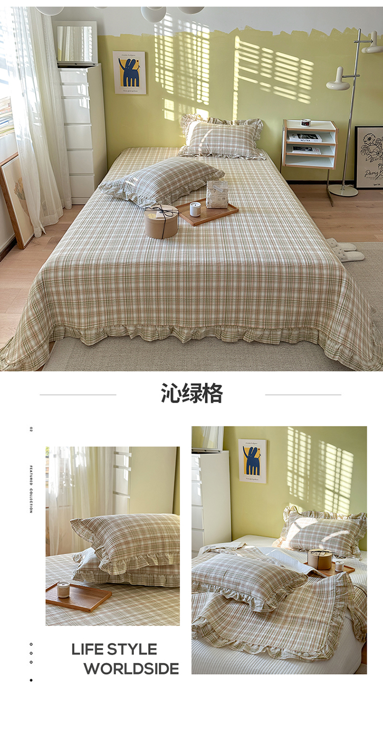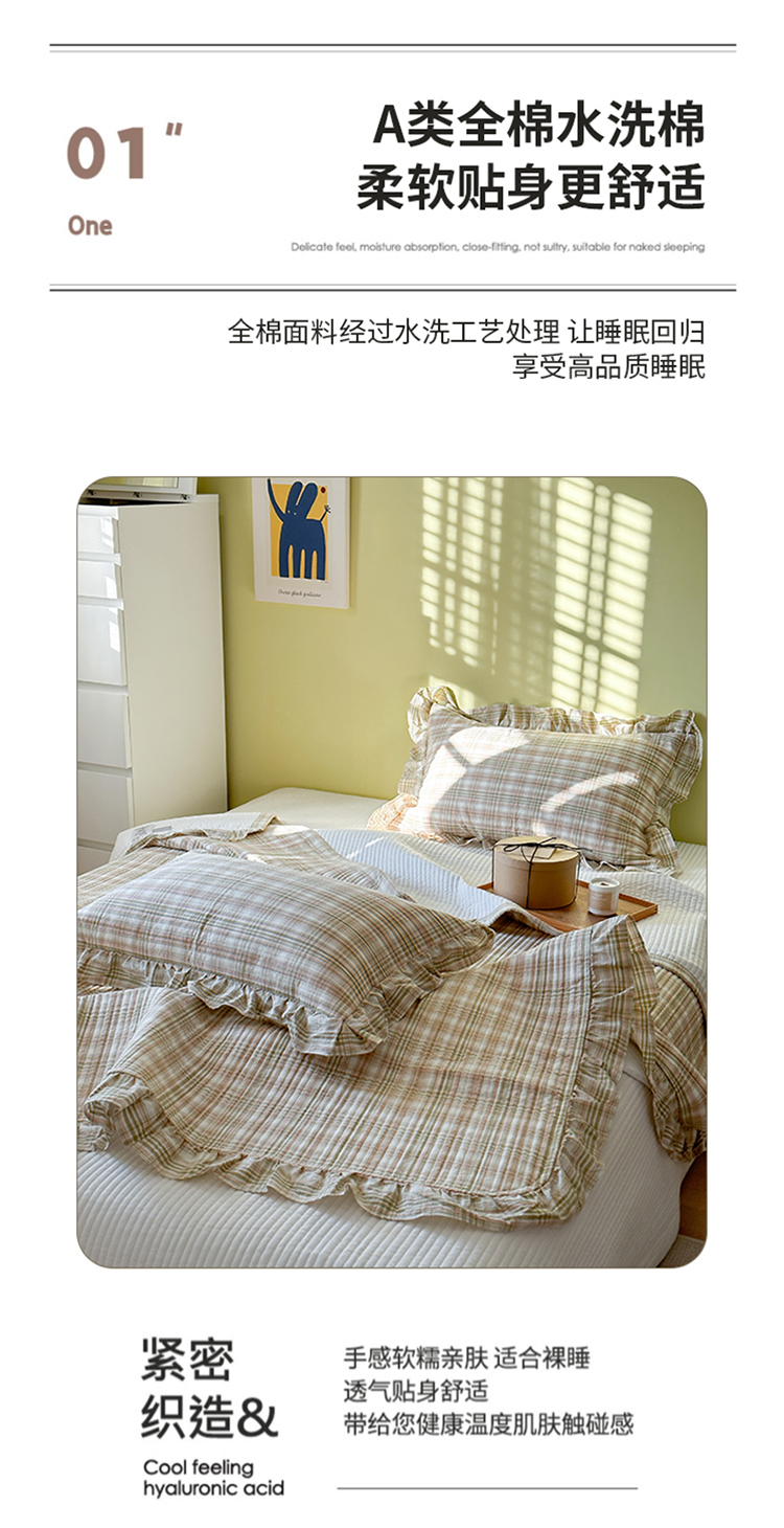 商品名称:琳可家居 2023新款A类韩版色织全棉水洗棉单被套 沁绿格
