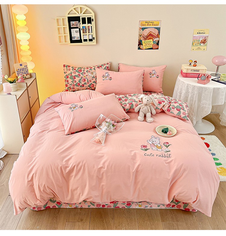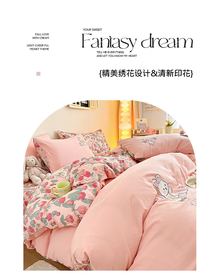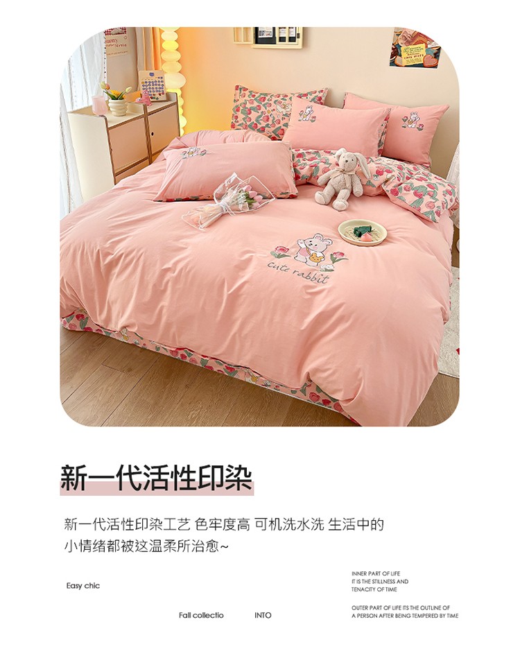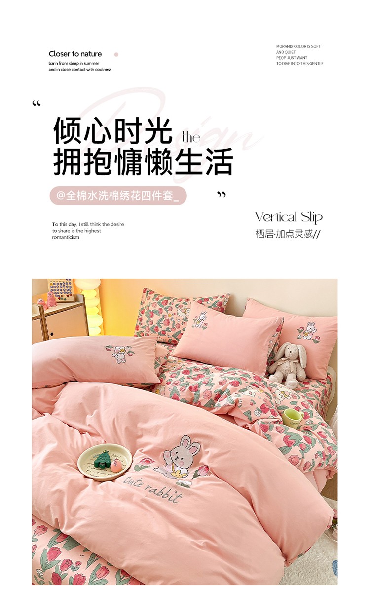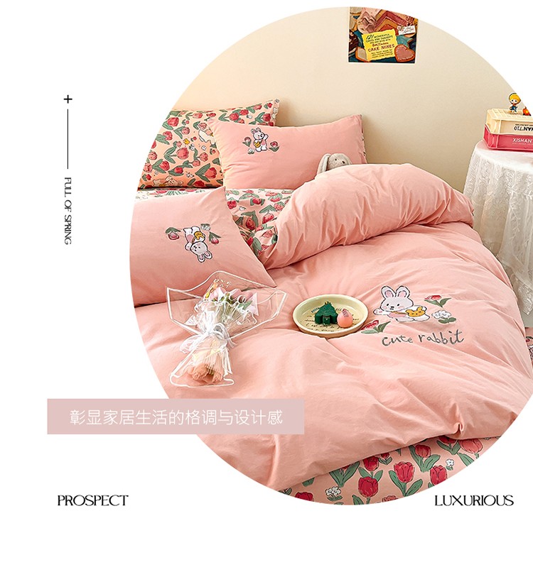 商品名称:雅居纺 2023新款全棉水洗棉边角绣花四件套 小兔兔