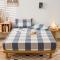 九沐良品 新款A类色织水洗棉床笠 米棕丈青格