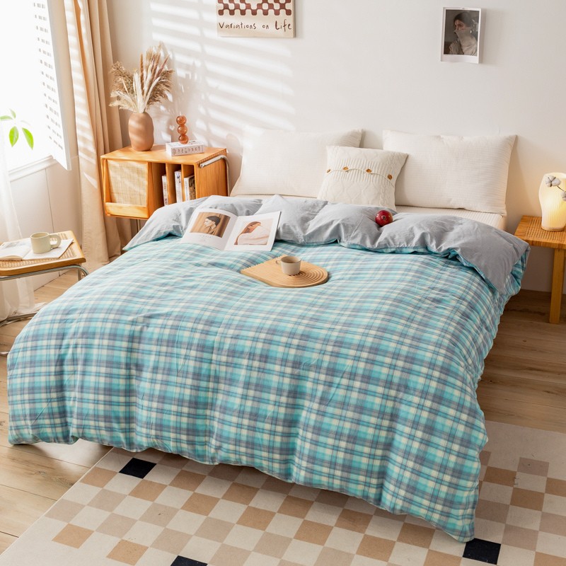 九沐良品 新款A类色织水洗棉四件套单被套 星空绿