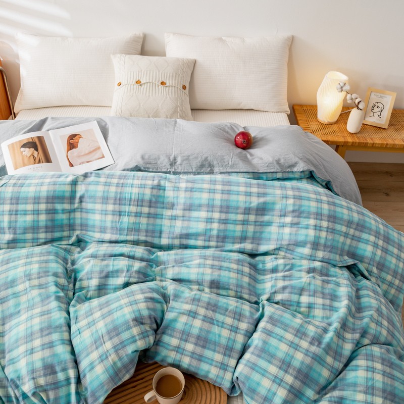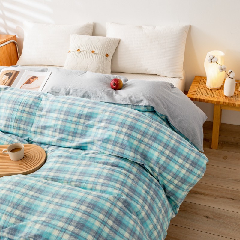 (总)九沐良品 2025新款全棉色织水洗棉无印风四件套,柏拉图-兰,粉小格,格林粉,灰条,绿大格,米小格,米粽艾青格,莫妮卡粉,莫妮卡兰,浅蓝小格,青春海蓝,希尔威亚蓝,新灰格,星空粉,星空绿,英伦格,中灰条