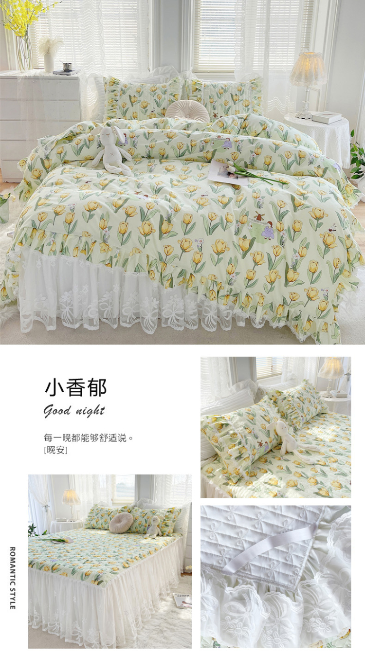 当前位置: 91家纺网 > 商品网购 > 床品套件 > 四件套 > 全棉普通四件套 > 菊上2023新款全棉-法式风蕾丝床裙四件套 10.小香郁