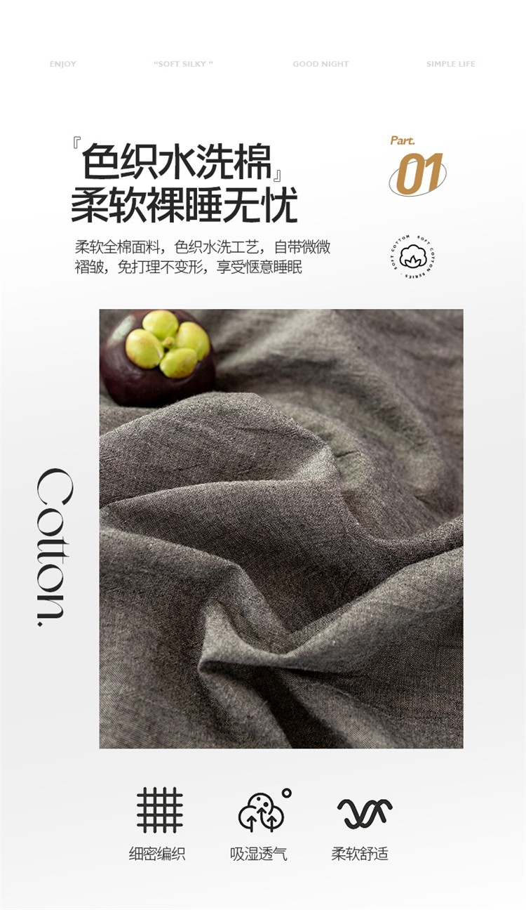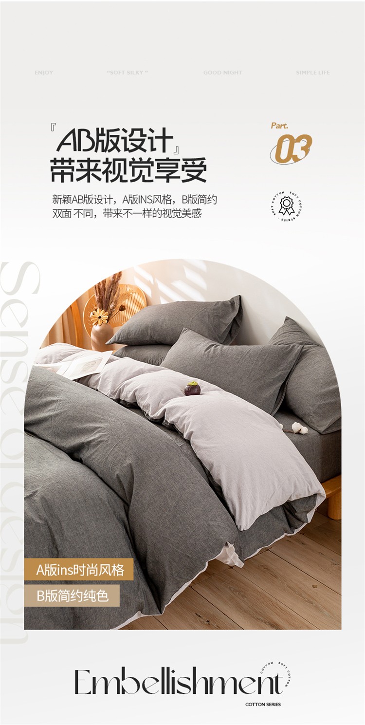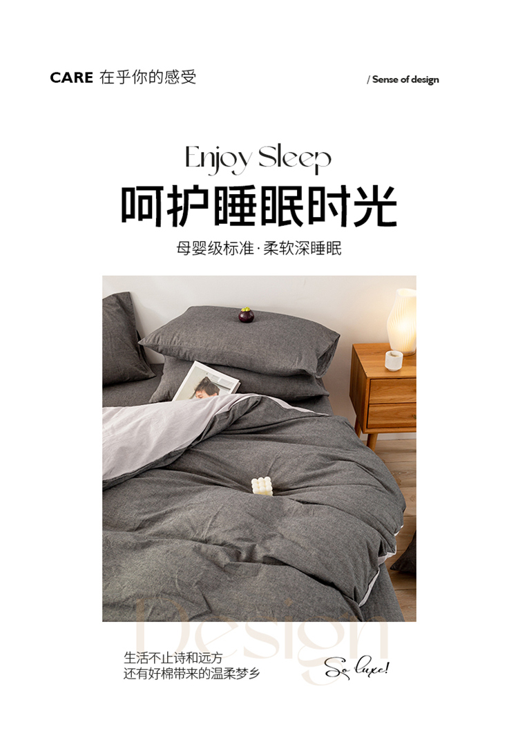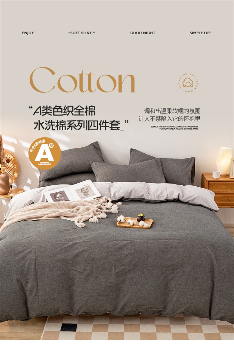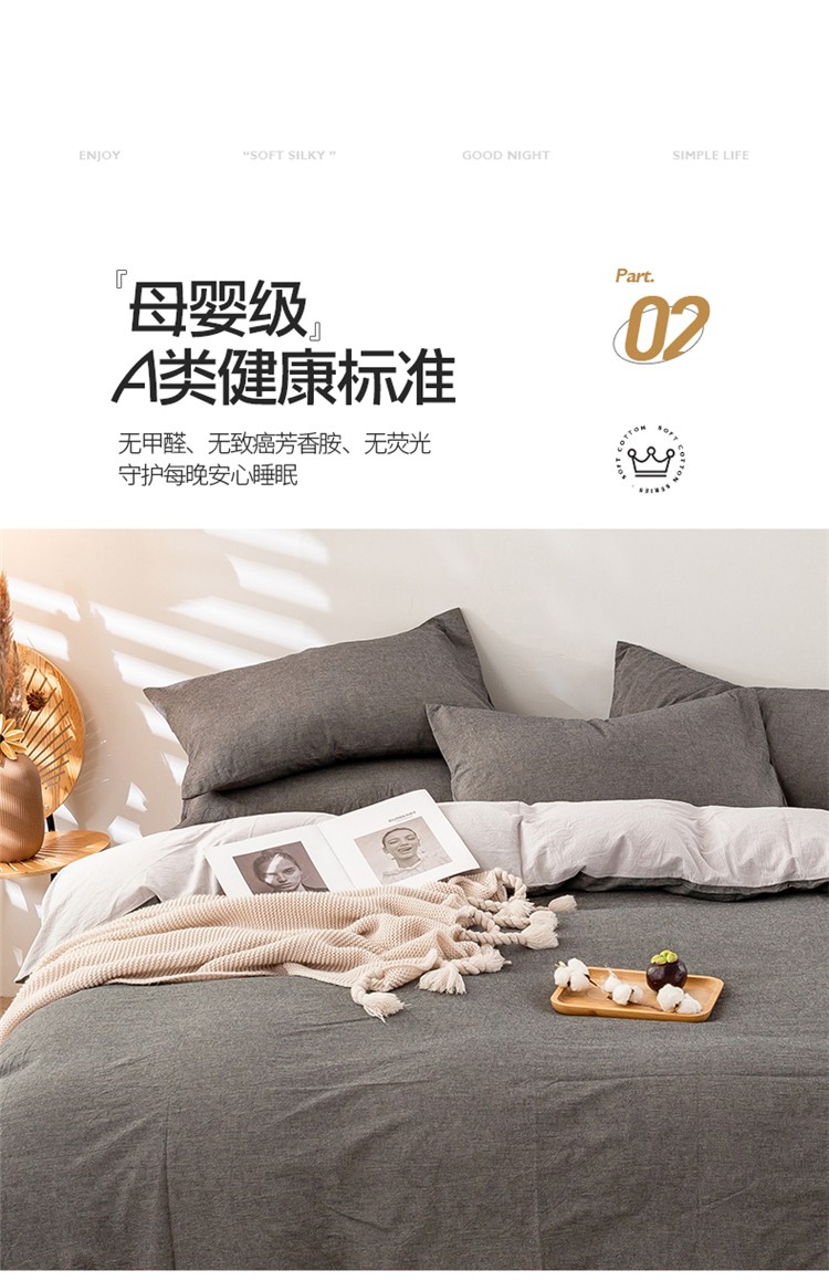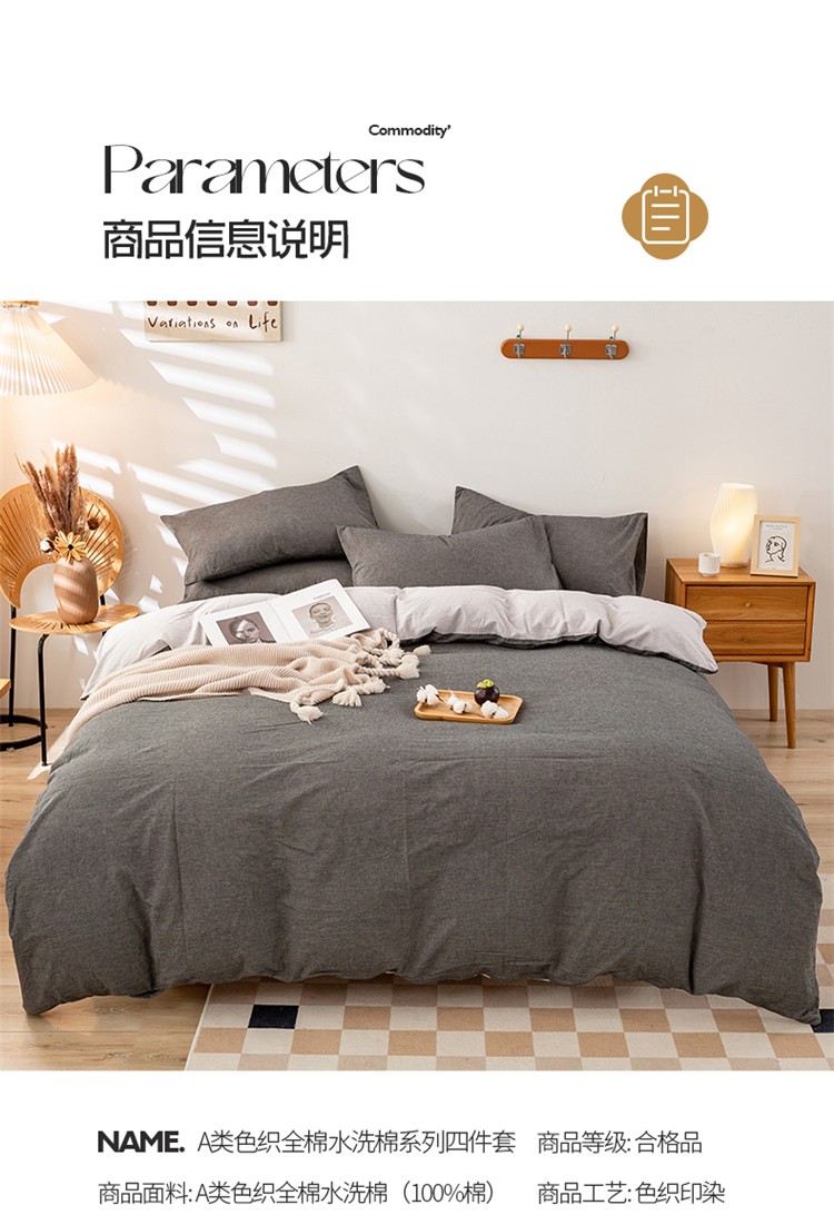 当前位置: 91家纺网 > 商品网购 > 床品套件 > 四件套 > 水洗棉四件套 > 九沐良品 新款A类色织水洗棉四件套 深灰+浅灰