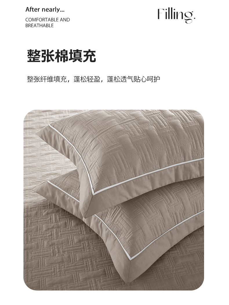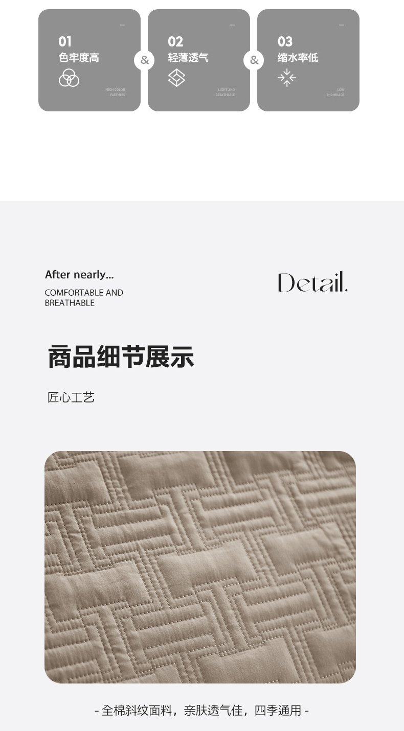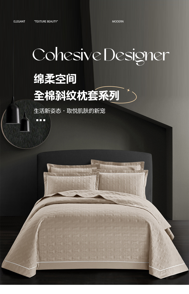 商品名称:优乐家纺 2023新款双面全棉斜纹绗绣床盖唐顿系列三件套 唐顿-都市驼