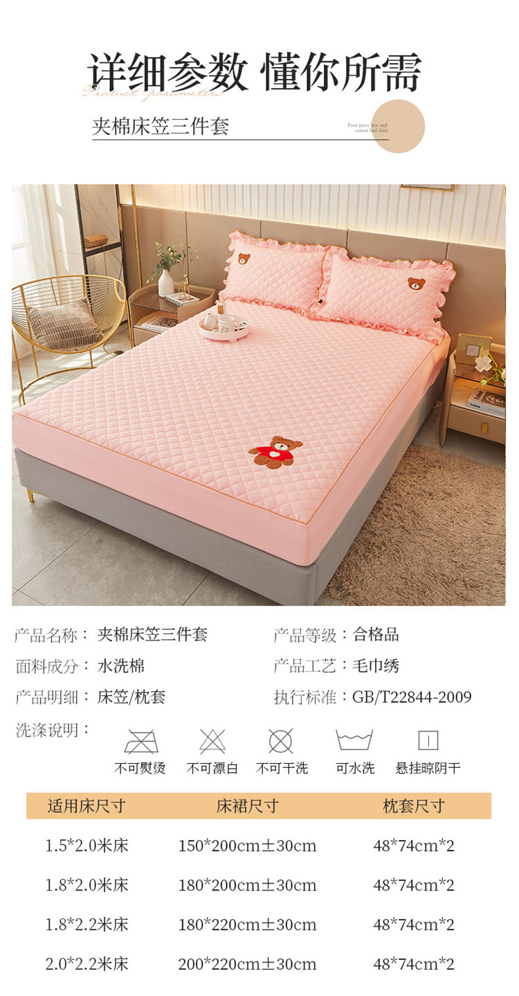 当前位置: 91家纺网 > 商品网购 > 床品套件 > 三件套 > 屹成家纺 2024年水洗棉毛巾绣款床笠三件套 玉色