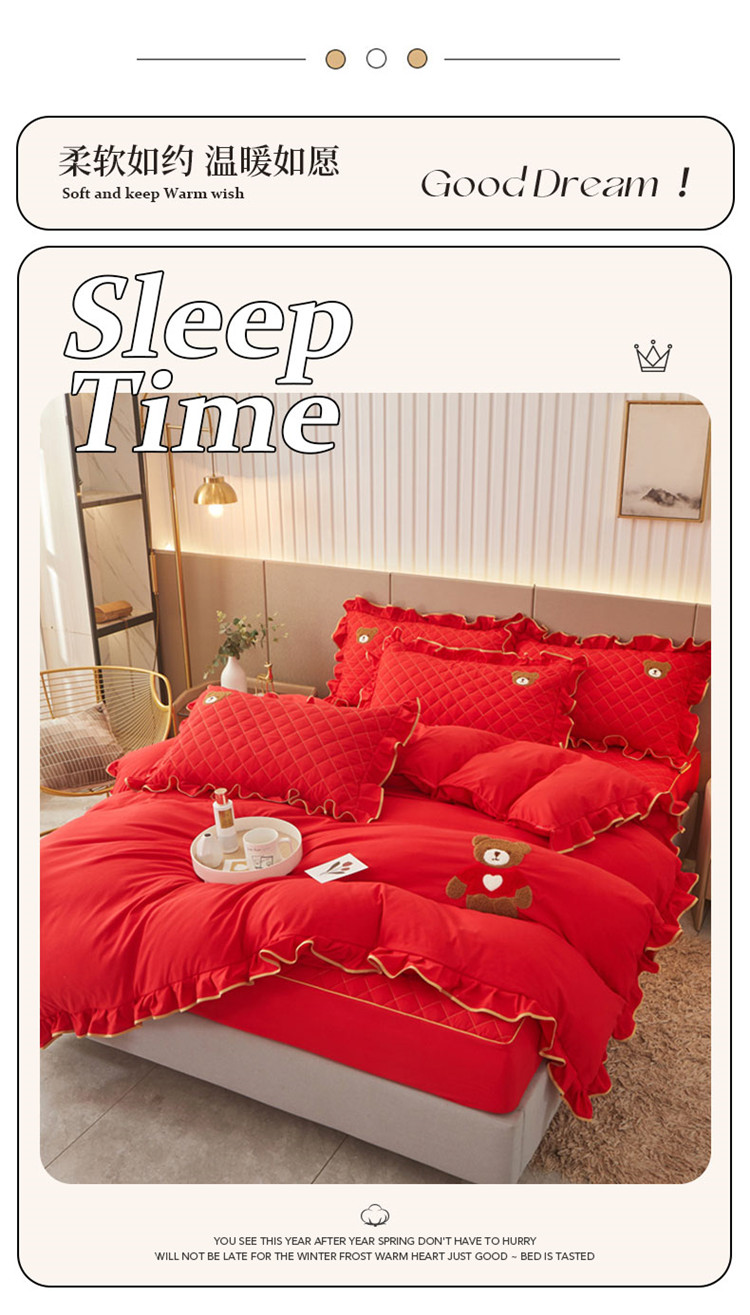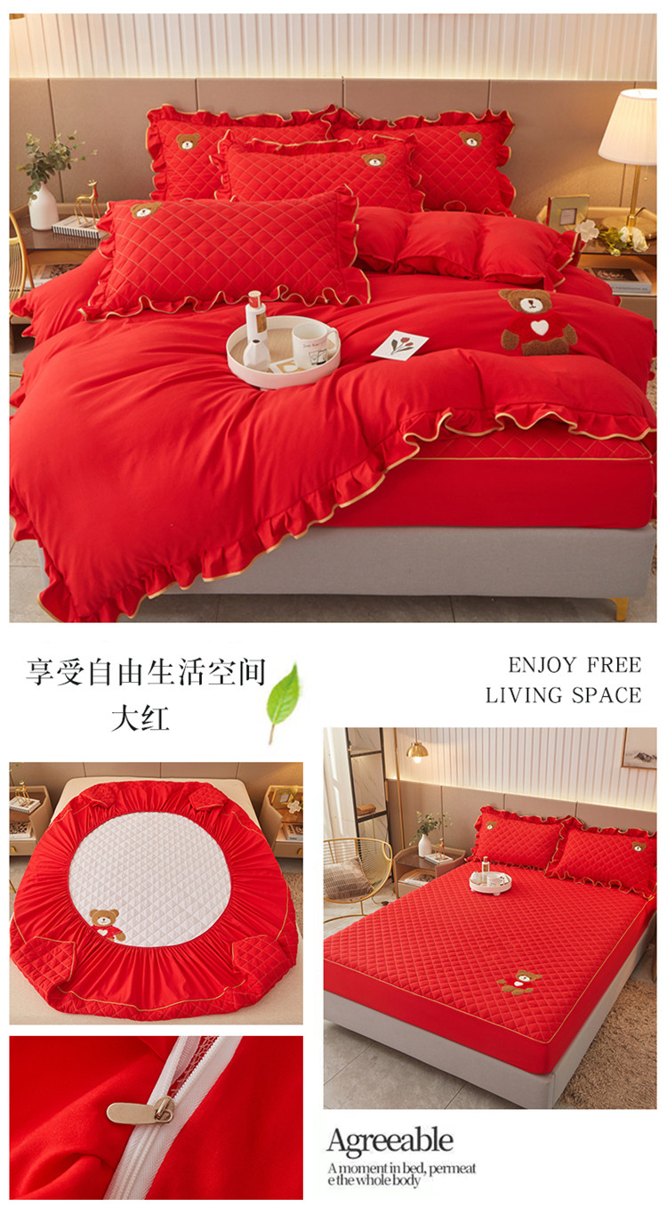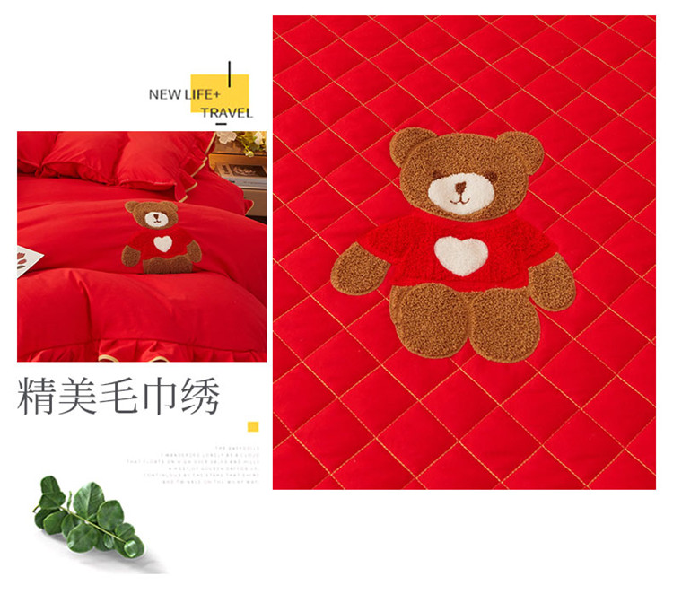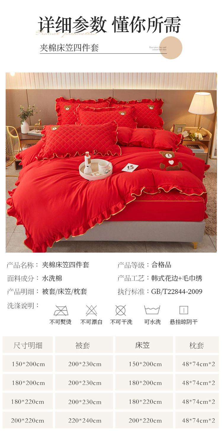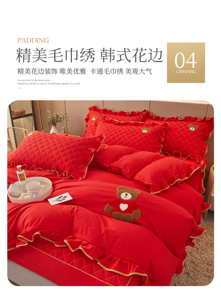 当前位置: 91家纺网 > 商品网购 > 床品套件 > 四件套 > 水洗棉四件套 > 屹成家纺 2024年水洗棉毛巾绣款床笠四件套 大红