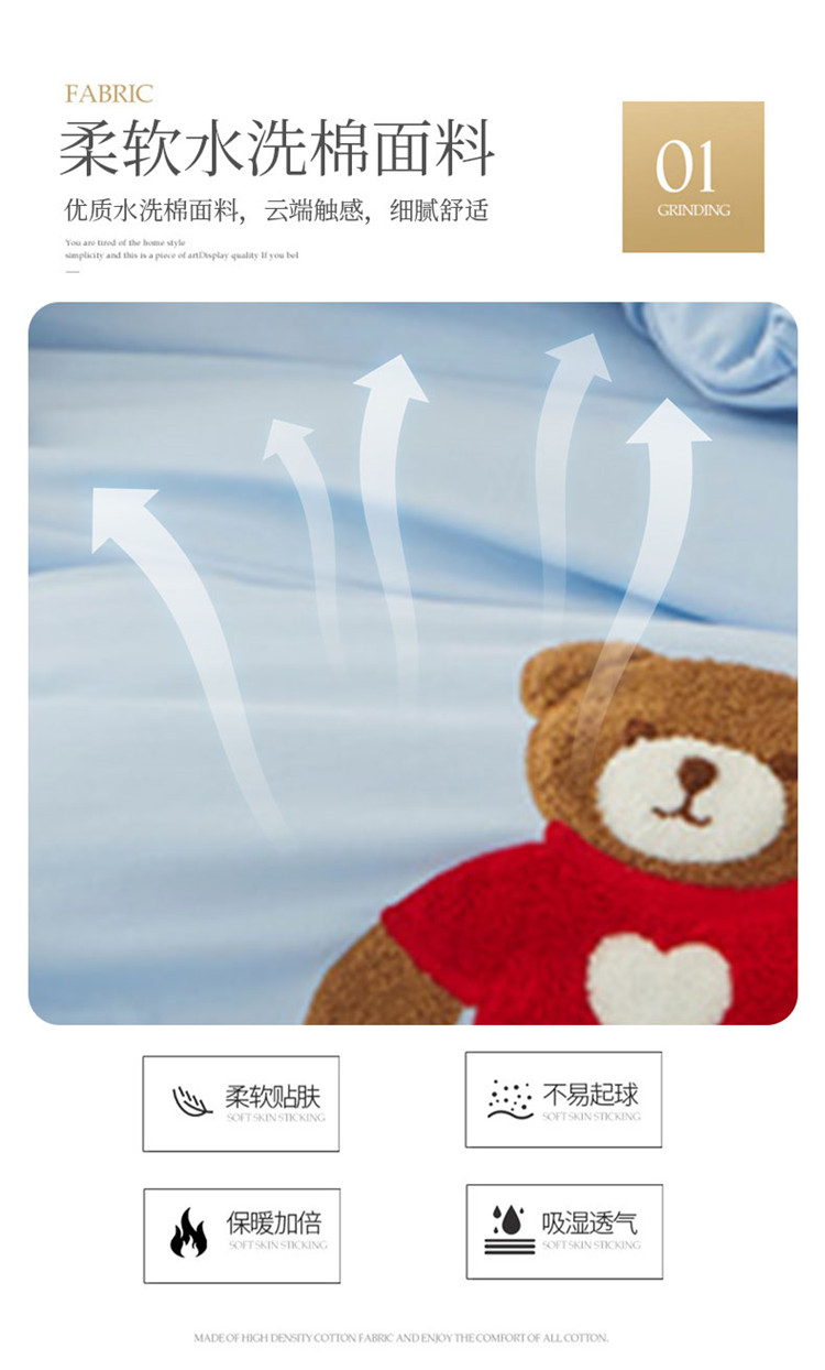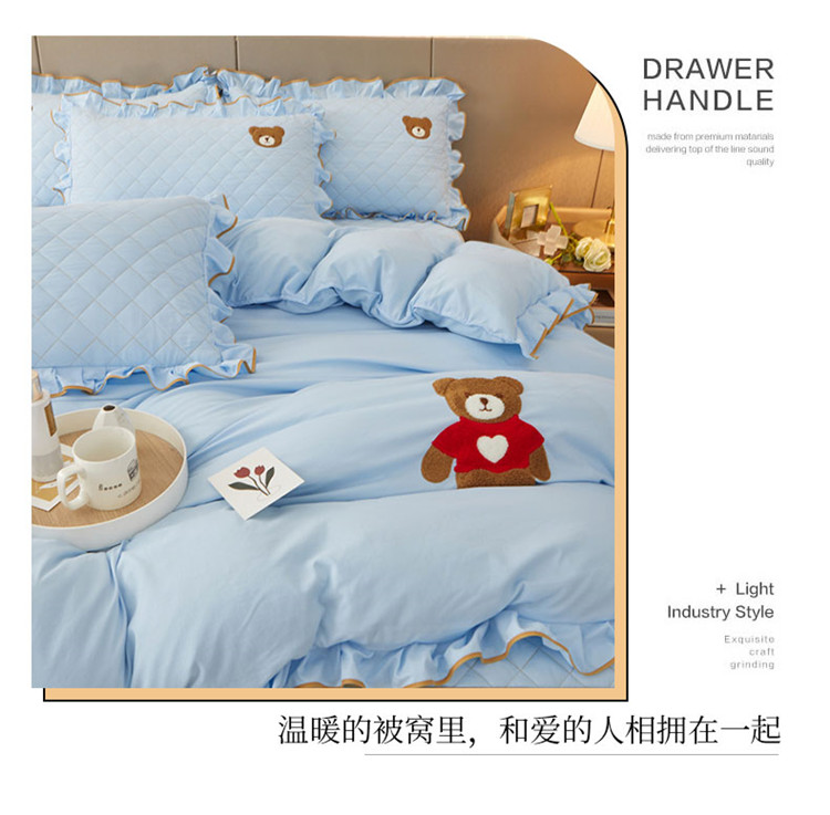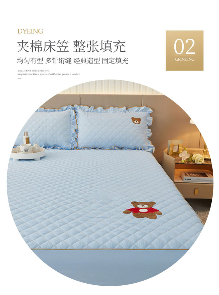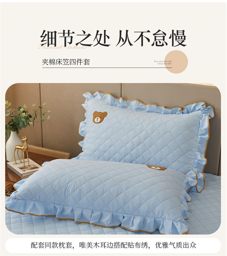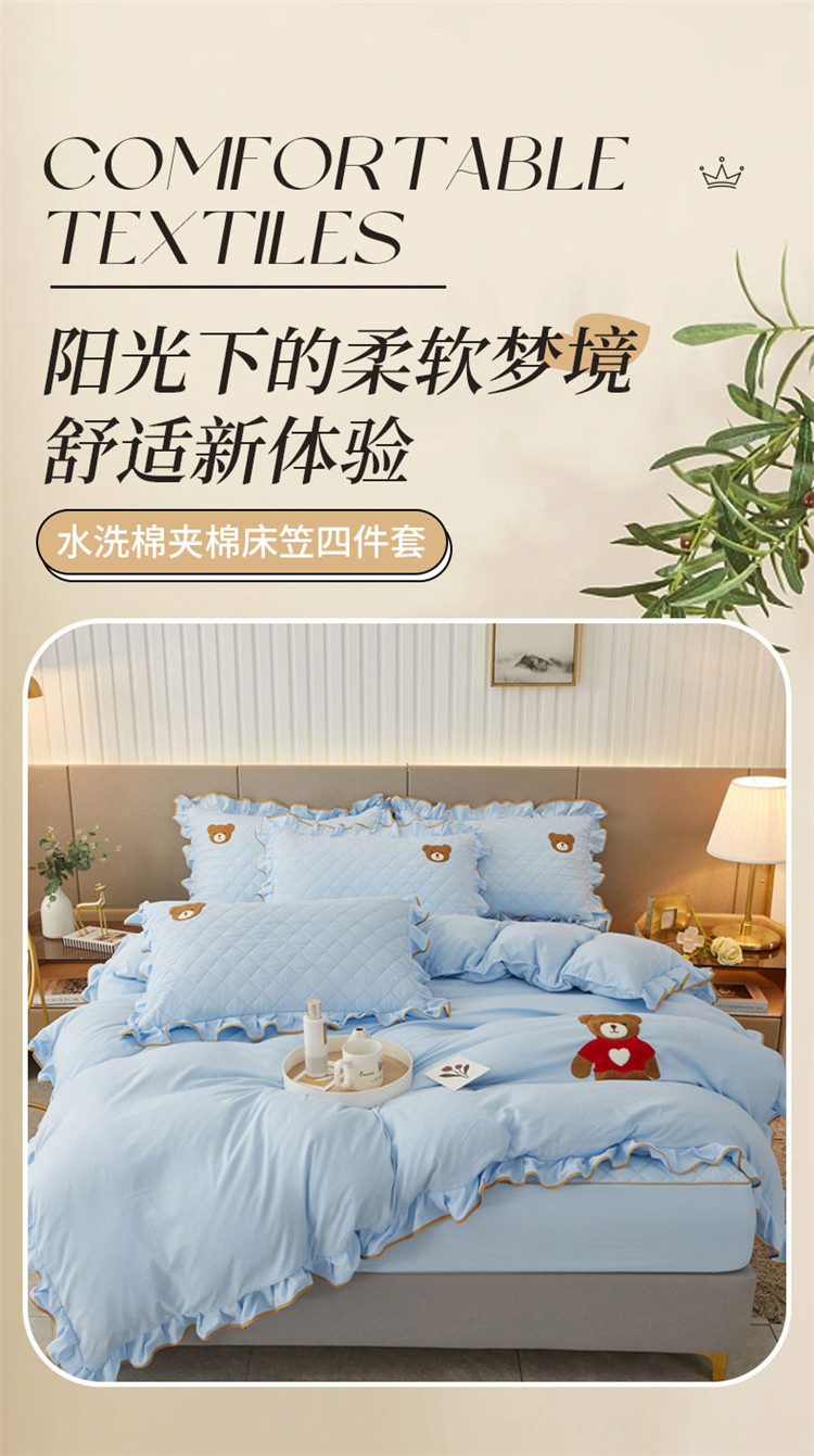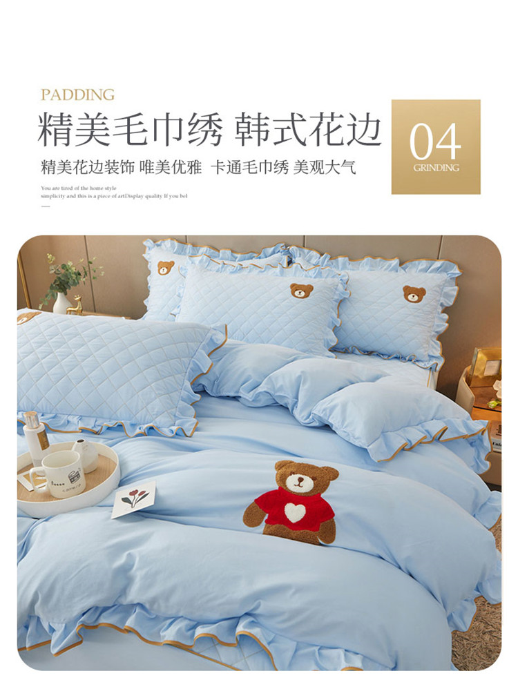 当前位置: 91家纺网 > 商品网购 > 床品套件 > 四件套 > 水洗棉四件套 > 屹成家纺 2024年水洗棉毛巾绣款床笠四件套 天蓝