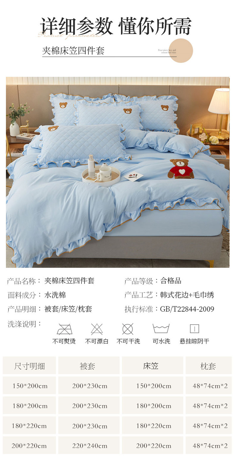 床笠180*200cm 被套220*240cm 枕套一对 | ¥150.00 |