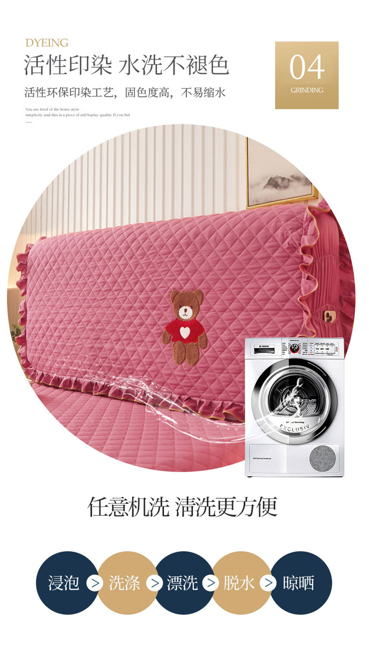 (总)屹成 2024新款水洗棉蕾丝四季款床笠床裙单品套件-床裙三件套,粉玉,豆沙,粉红,大红,橄榄绿,卡其,玫红,浅紫,水绿,天蓝,银灰