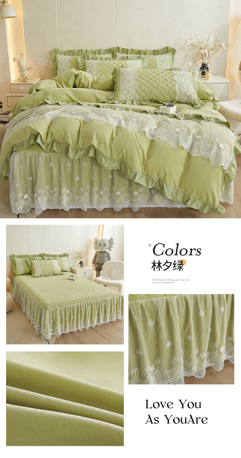 当前位置: 91家纺网 > 商品网购 > 床品套件 > 四件套 > 普通磨毛四件套 > 网红馆 2025新款亲肤蕾丝床裙四件套-梦想生活 林夕绿