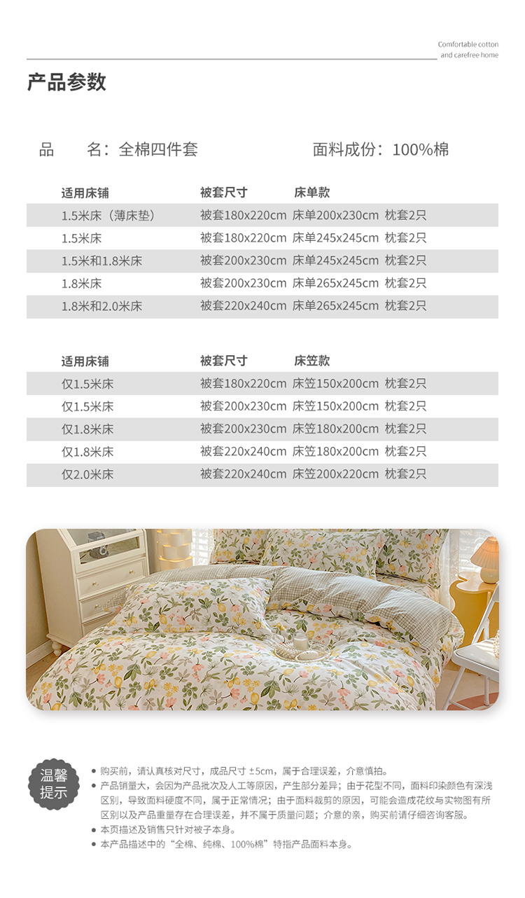 商品名称:(总)元元 2023新款13372全棉印花四件套
