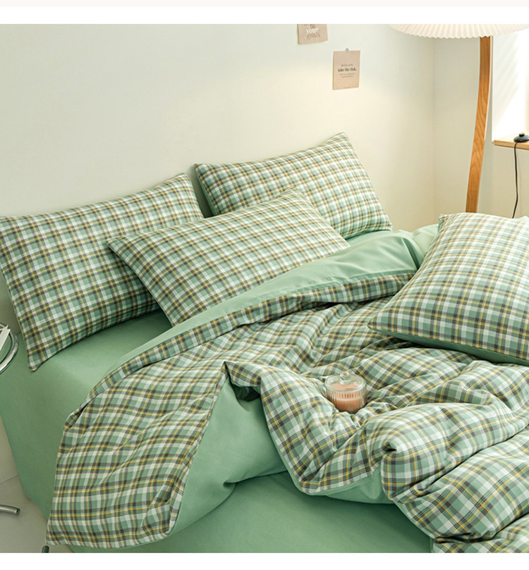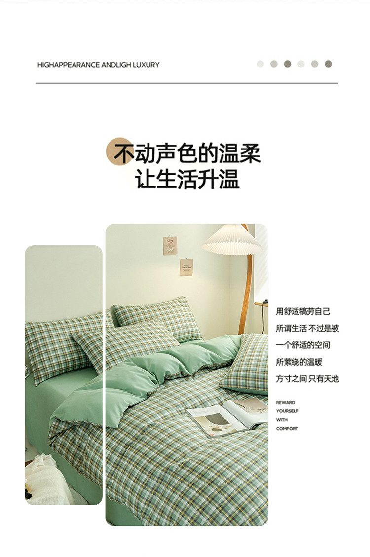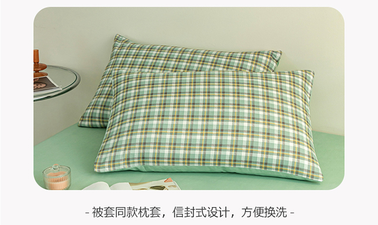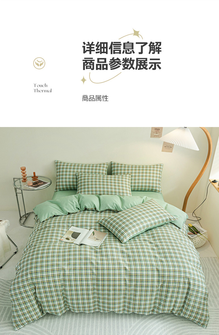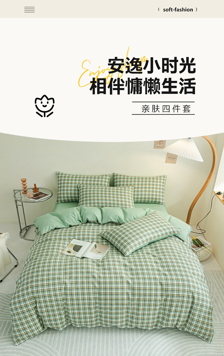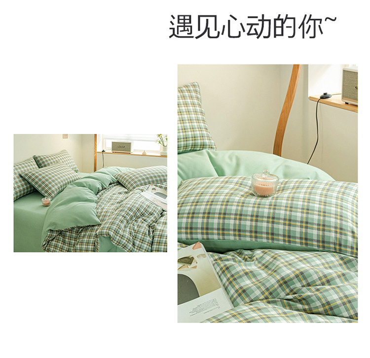 商品名称:米瑞娜 2024新款无印风四件套格子条纹水洗棉四件套 简兮-绿