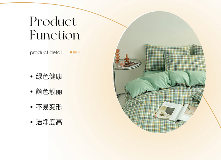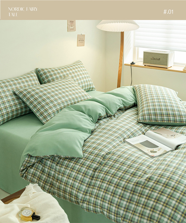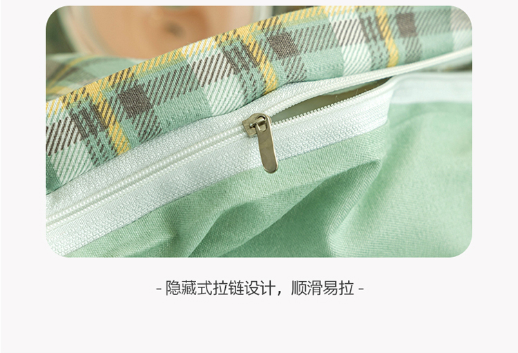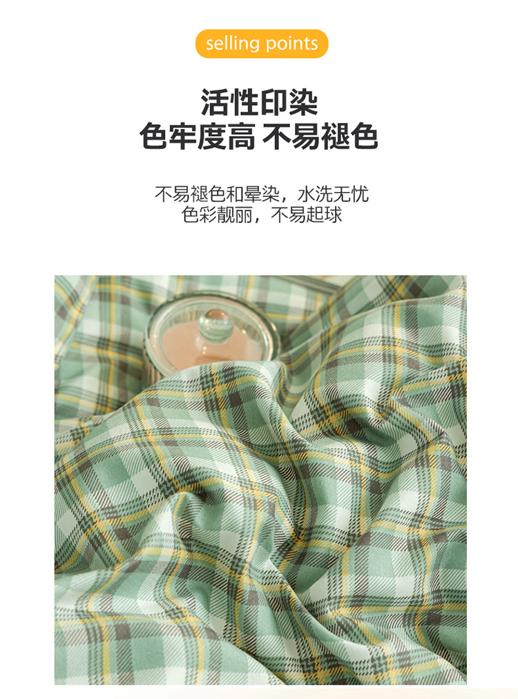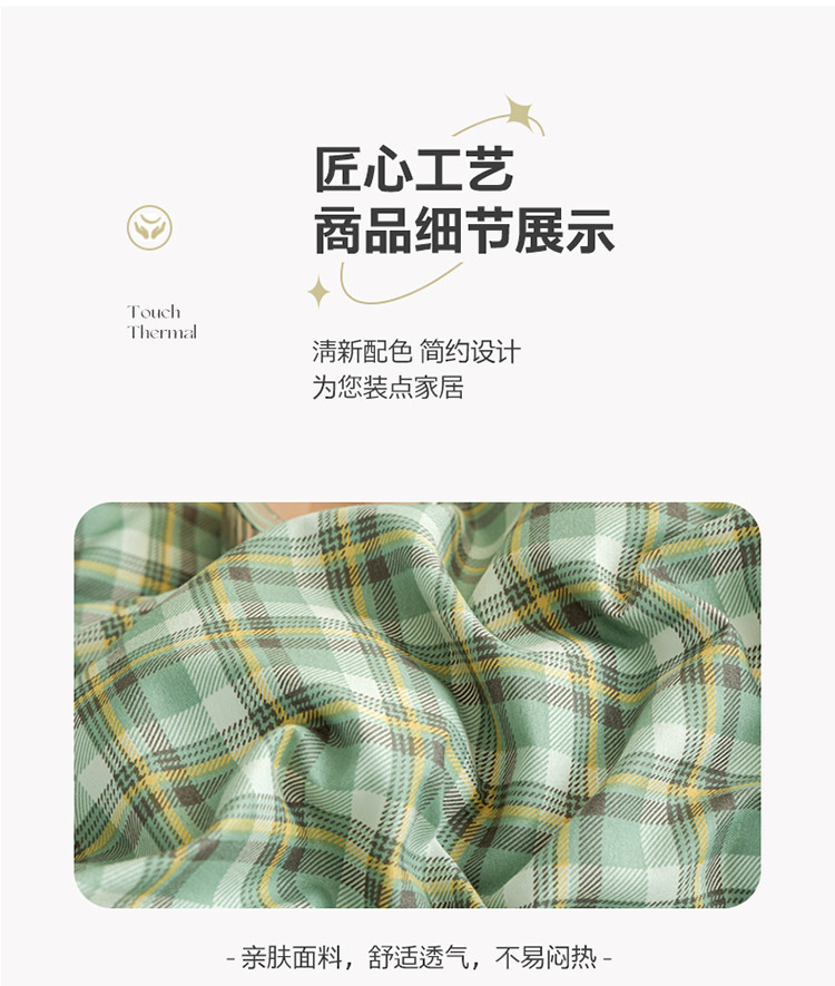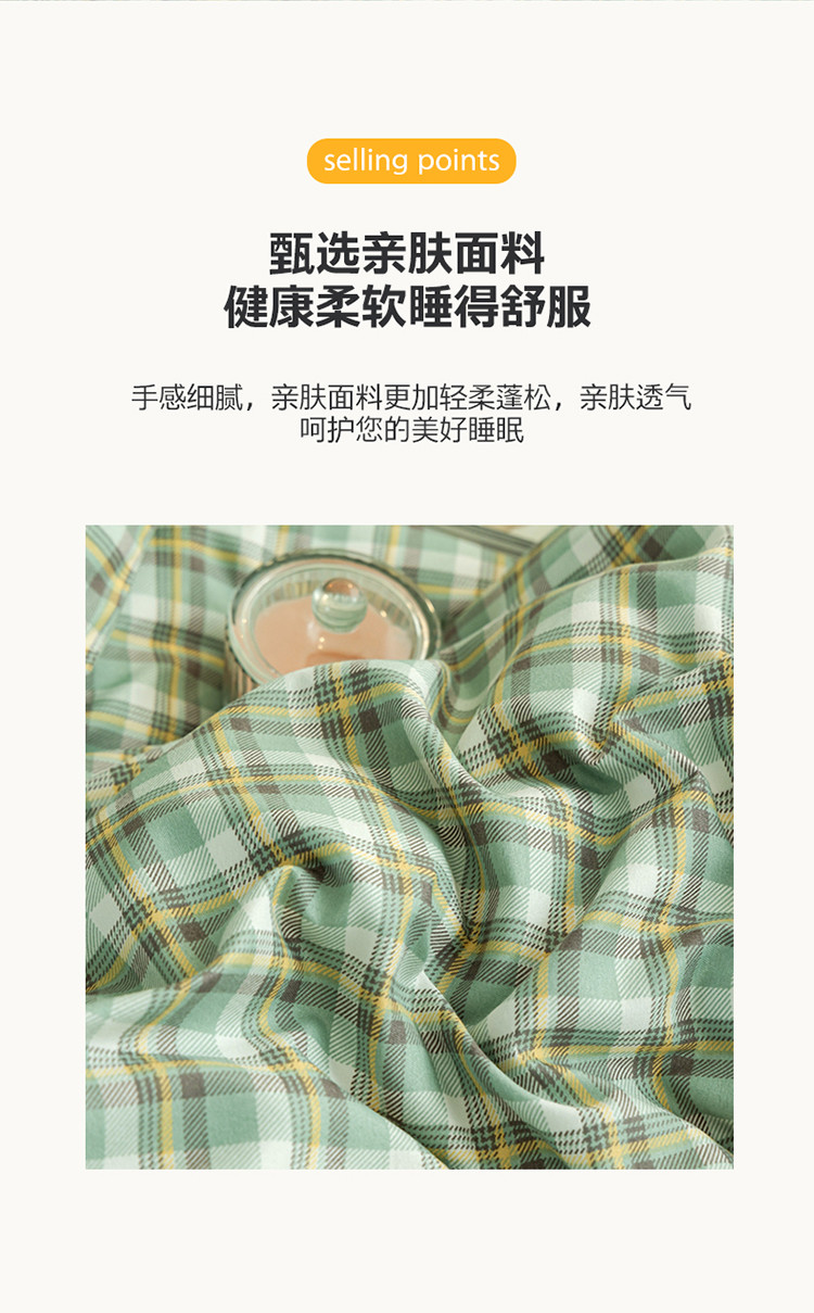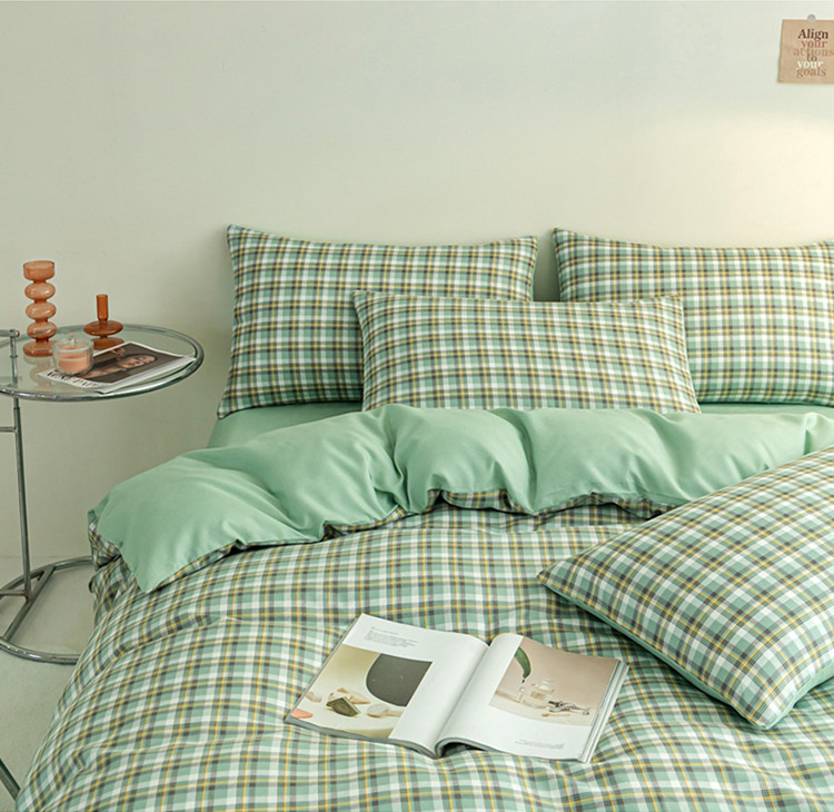 商品名称:米瑞娜 2024新款无印风四件套格子条纹水洗棉四件套 简兮-绿