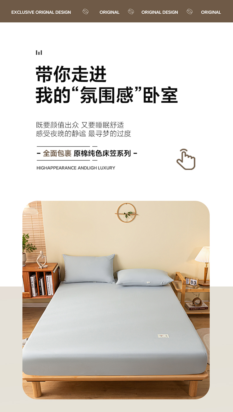 • 91家纺网 家纺一手货源 找家纺 居眠2023新款原棉纯色单层床笠系列 浅灰