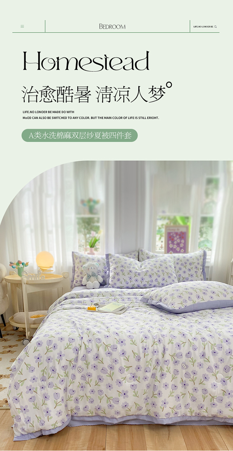 商品名称:梦之岛 2023新款A类母婴级双层纱水洗棉麻夏凉被四件套 夏朵