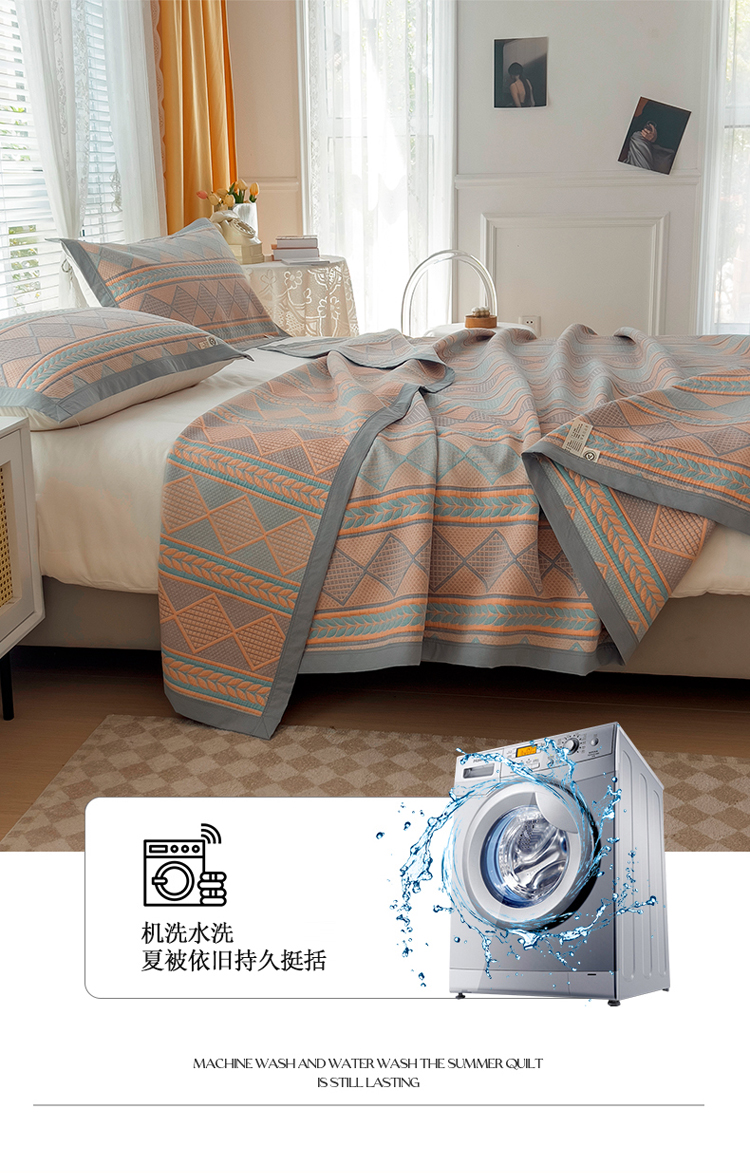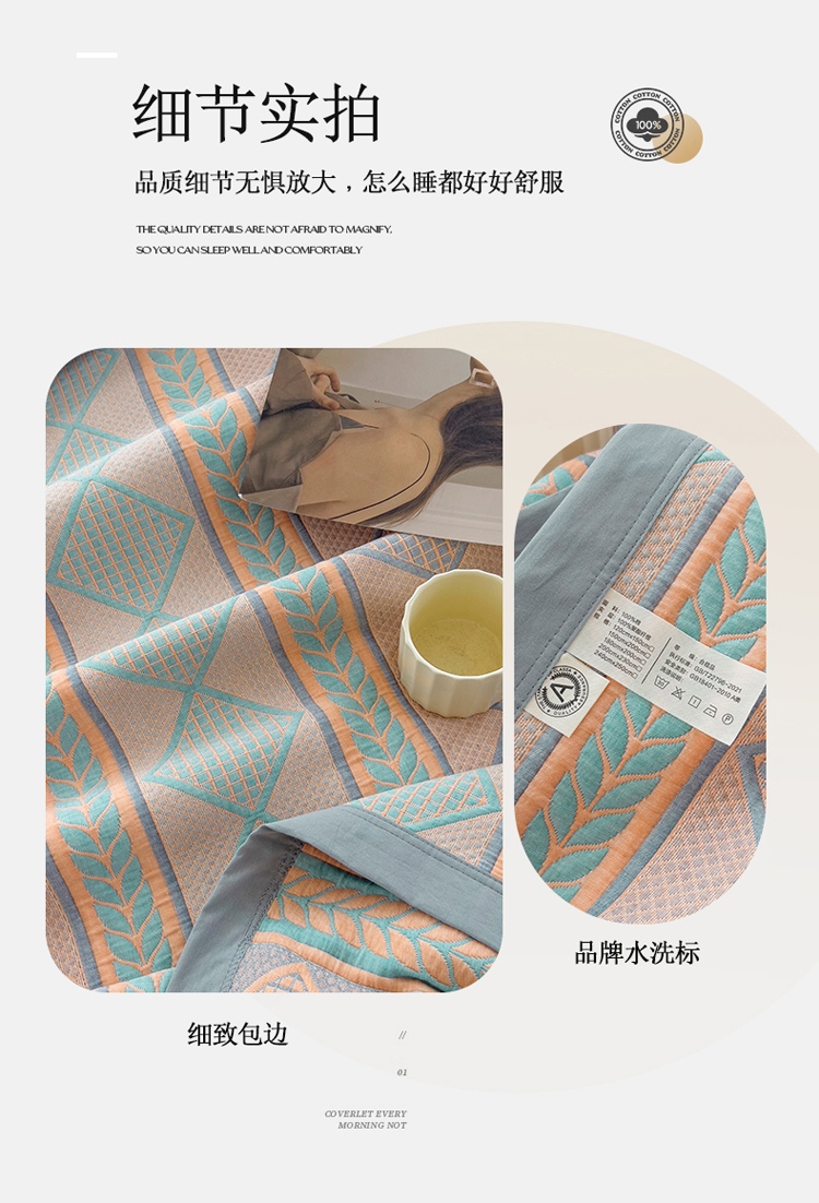 商品名称:全棉三层细纱色织提花毛巾被盖毯大床盖夏被空调被毛巾毯 风吹麦芽 橙绿