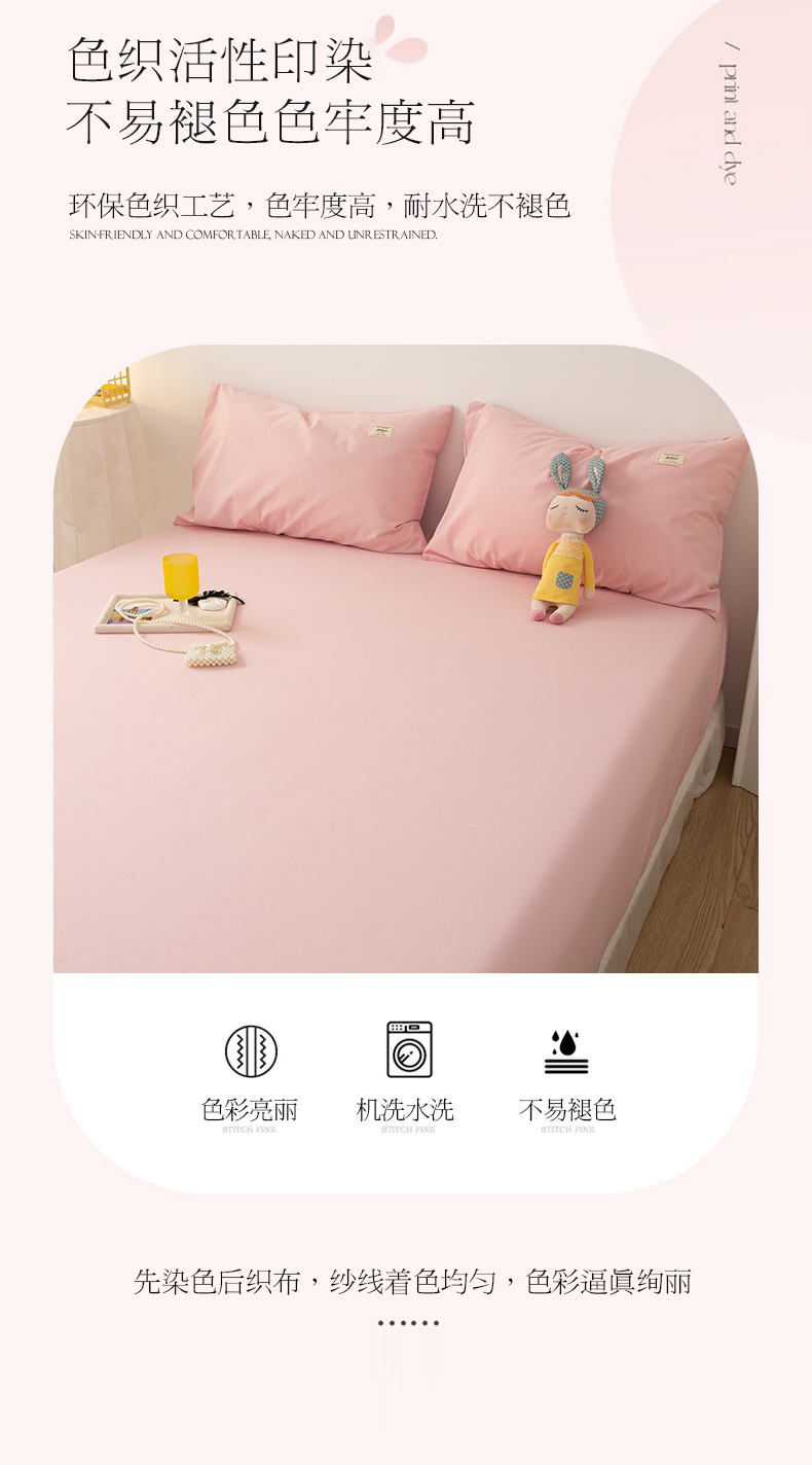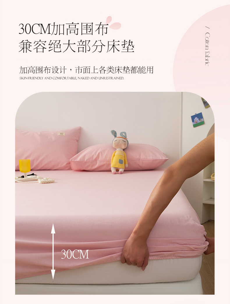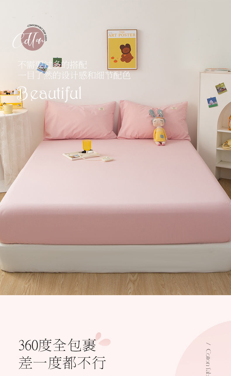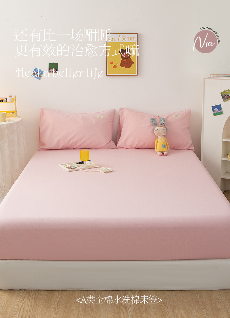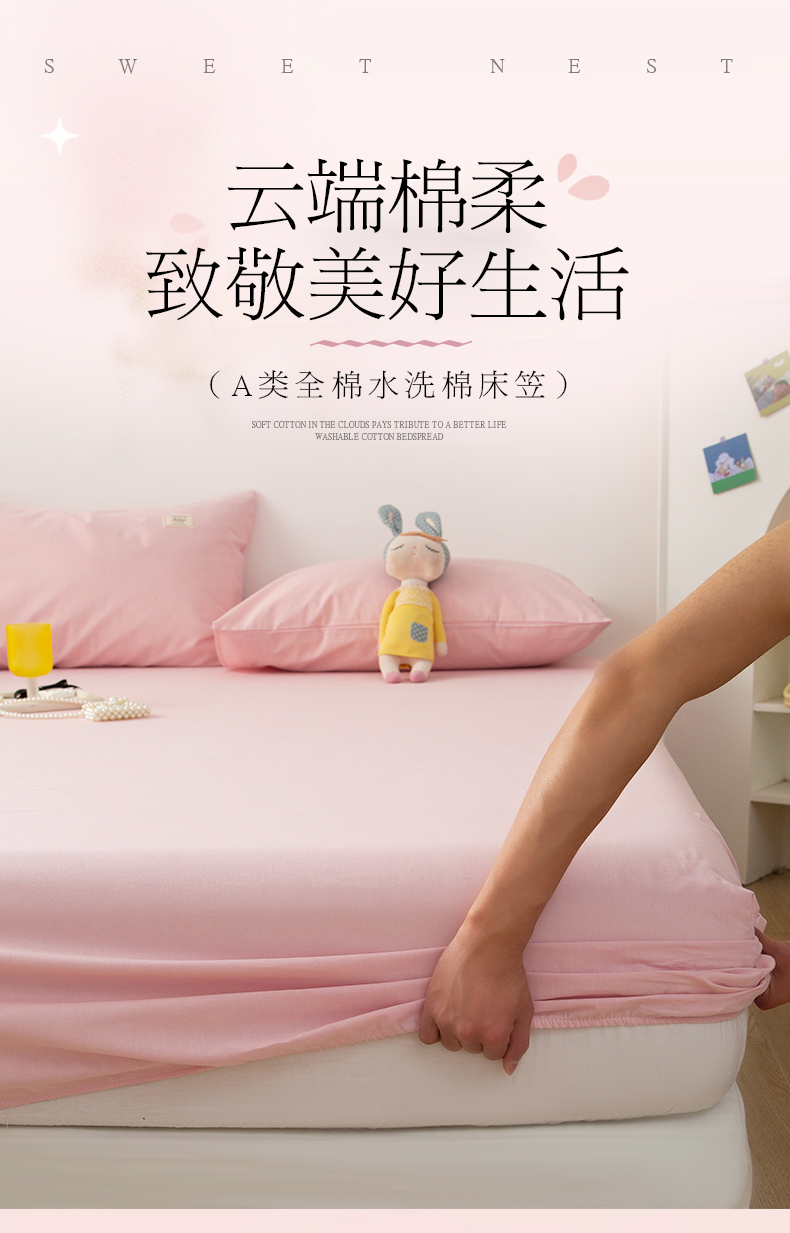 芬晴 2023新款纯棉水洗棉单层床笠 嫩粉
