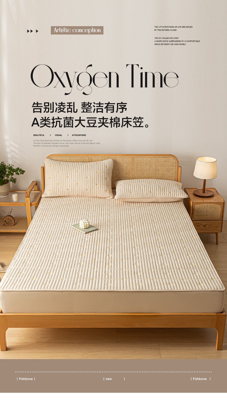 芬晴 2023新款A类抗菌大豆夹棉床笠 星河-卡其