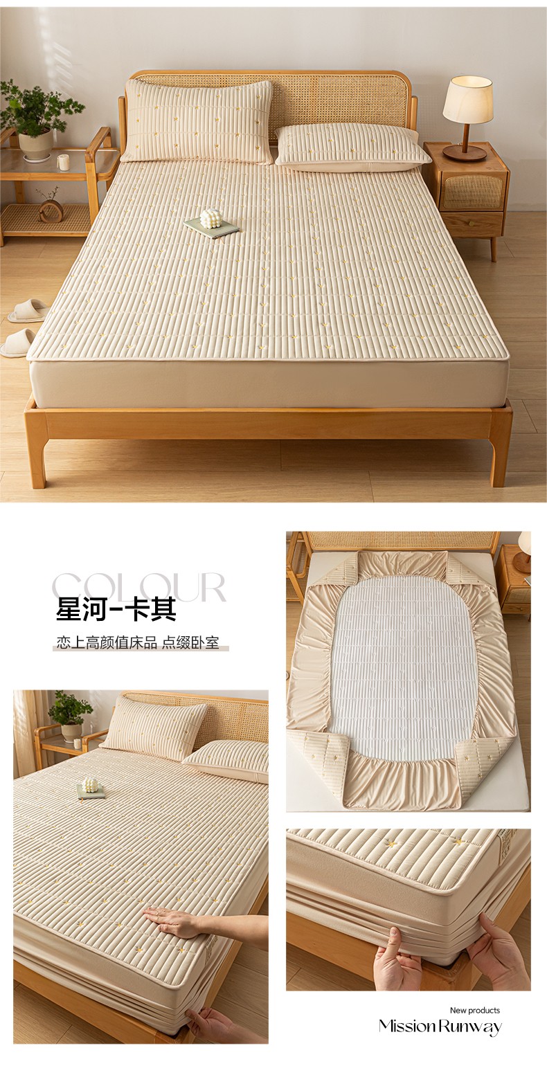 • 91家纺网 家纺一手货源 找家纺 芬晴 2023新款A类抗菌大豆夹棉床笠 星河-卡其