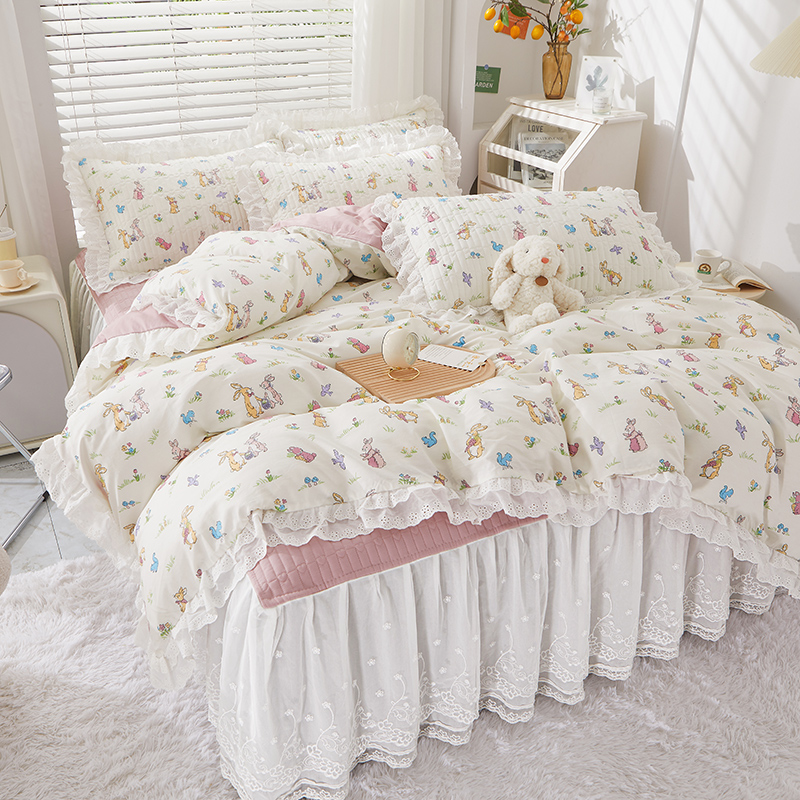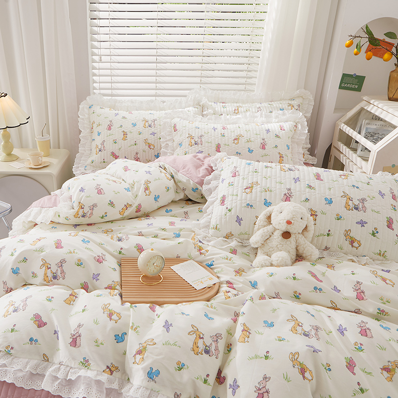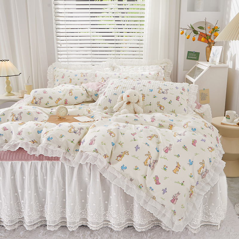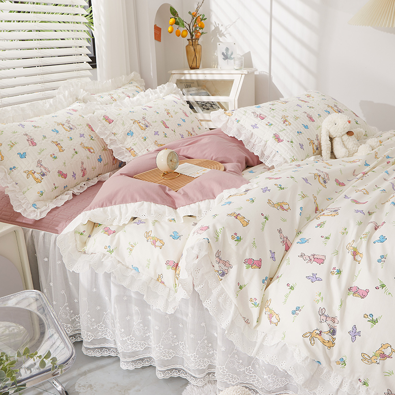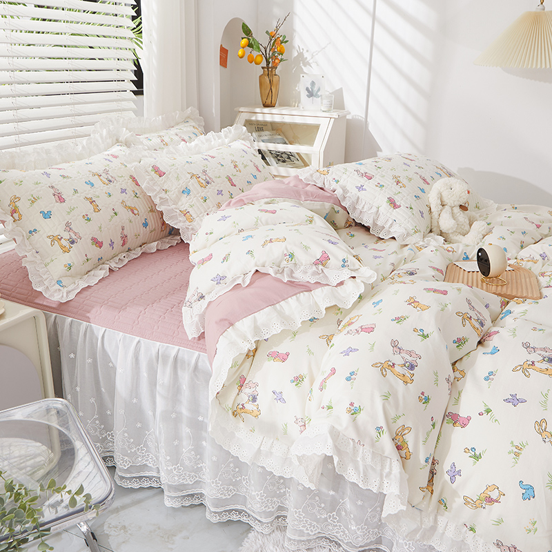 当前位置: 91家纺网 > 商品网购 > 床品套件 > 四件套 > 全棉普通四件套 > 宜凡家纺 2023新款A类全棉夹棉床裙四件套 奥丁兔