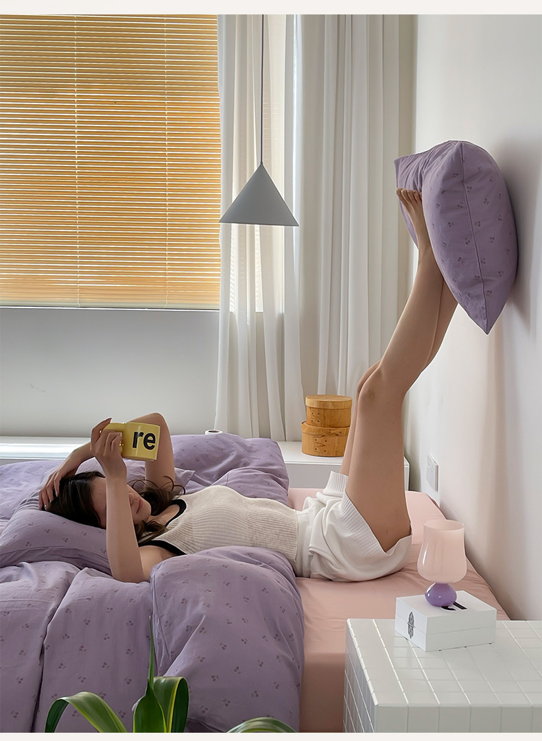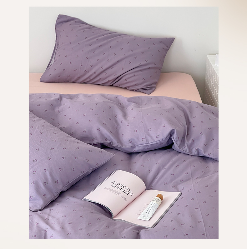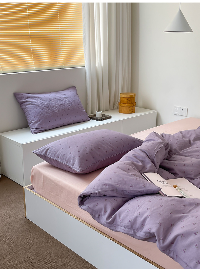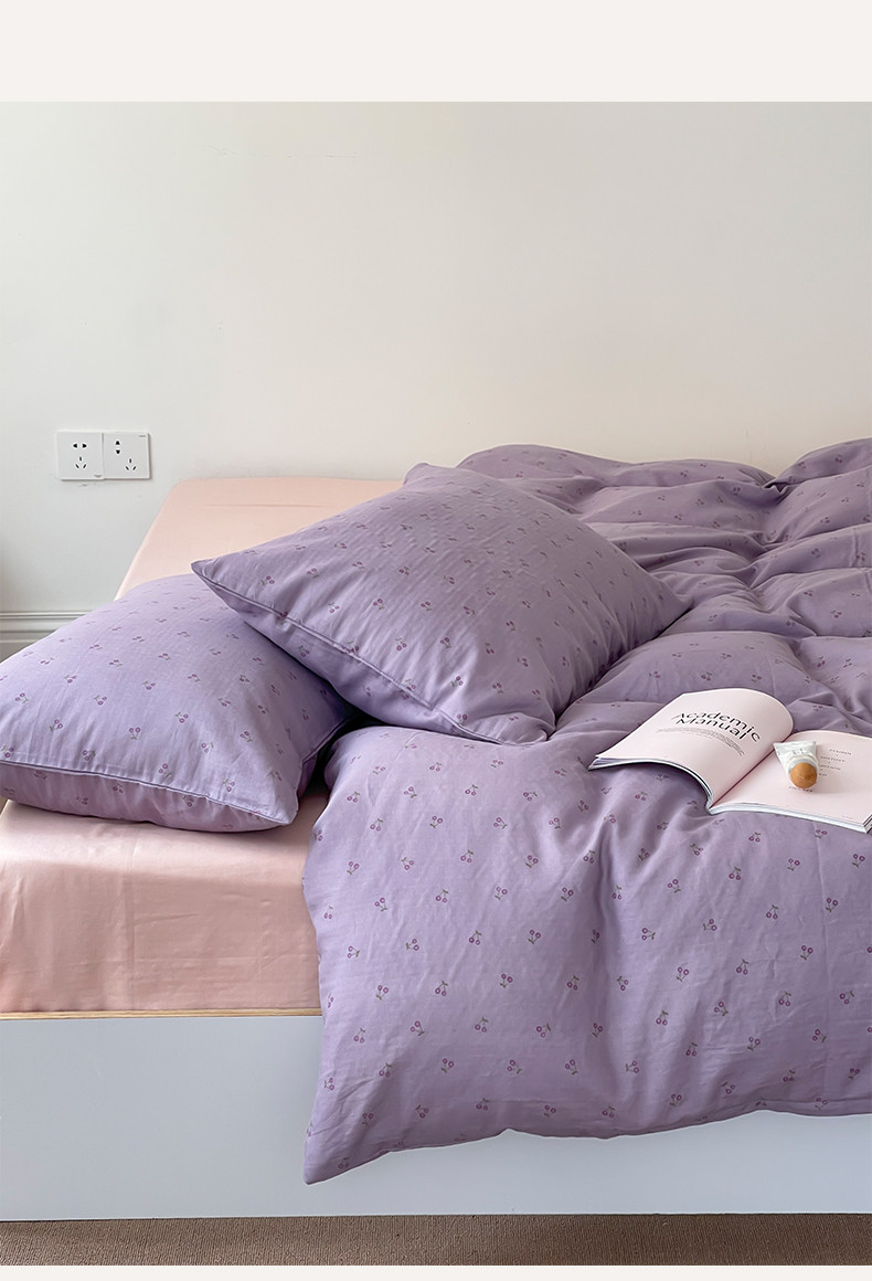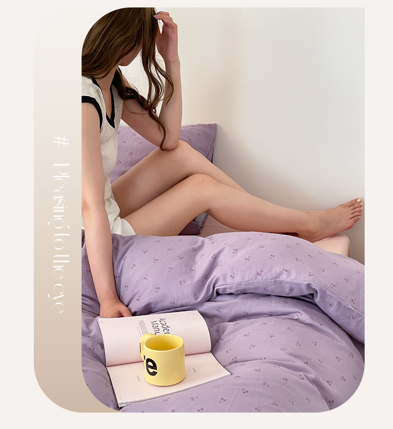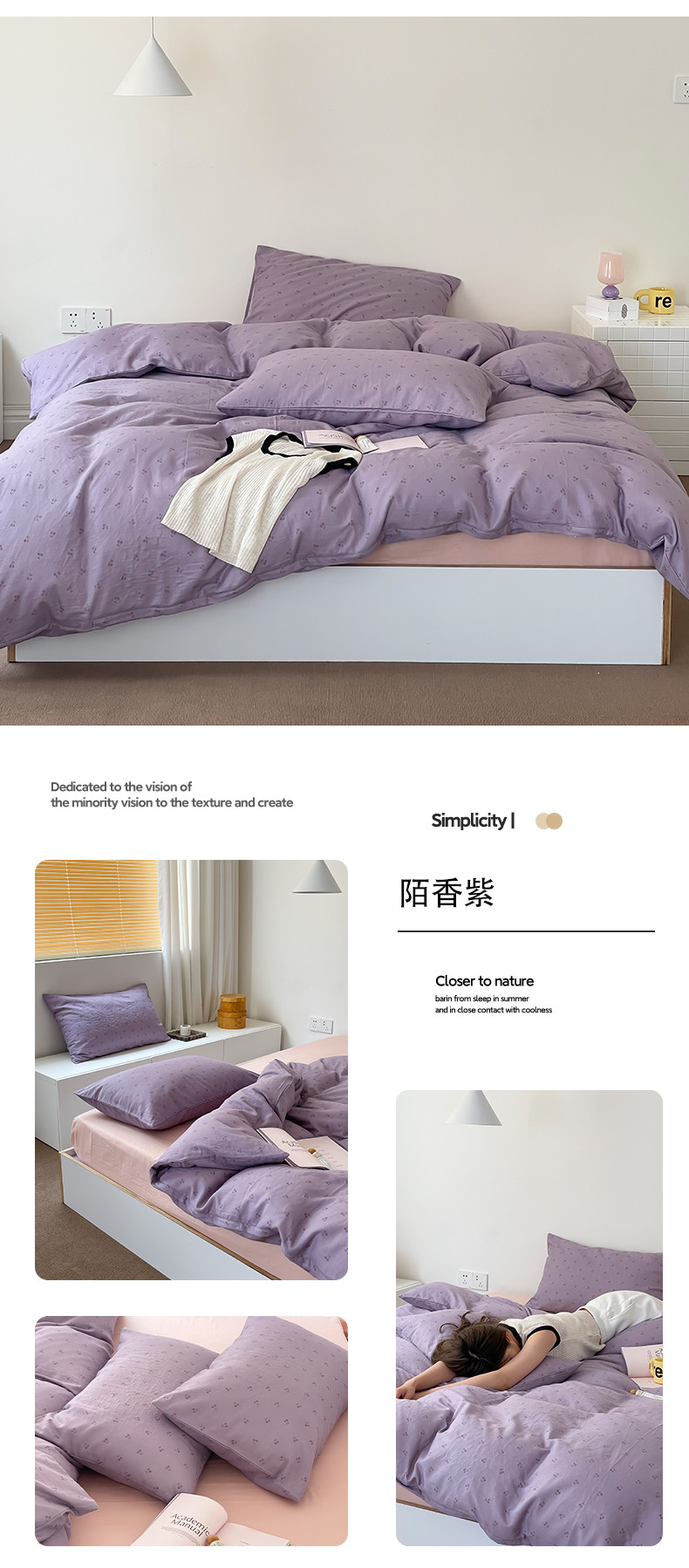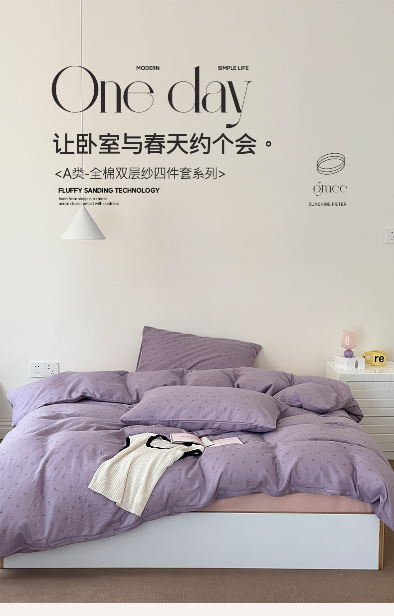 商品名称:荣轩家居 2023新款A类全棉双层纱印花四件套 陌香紫