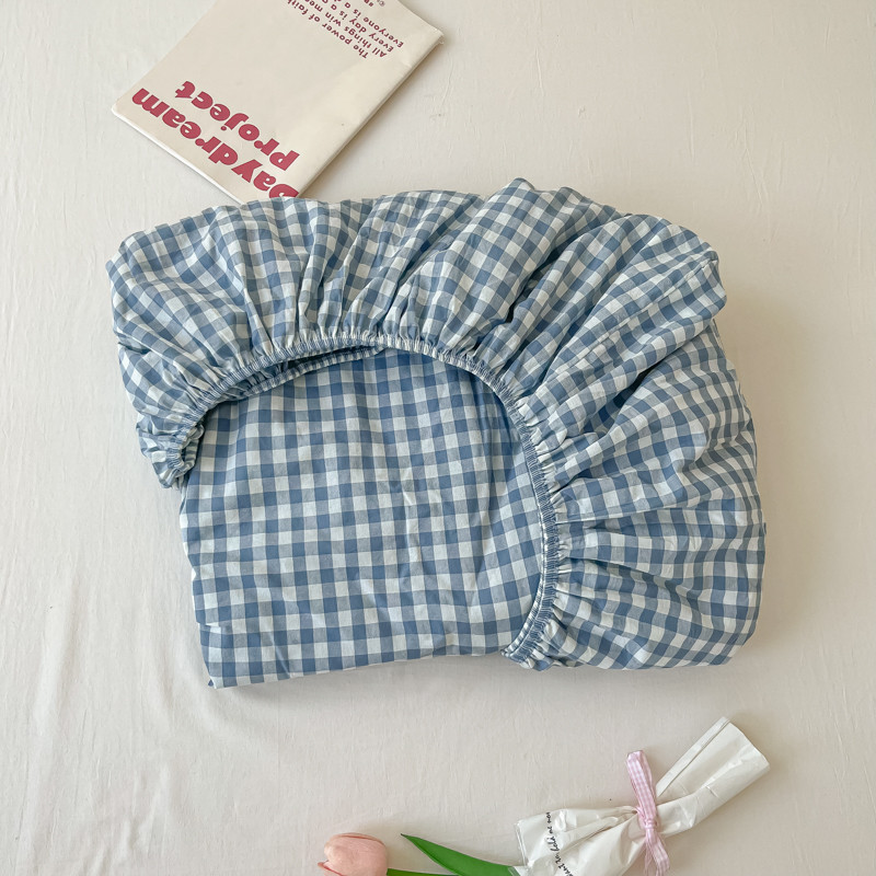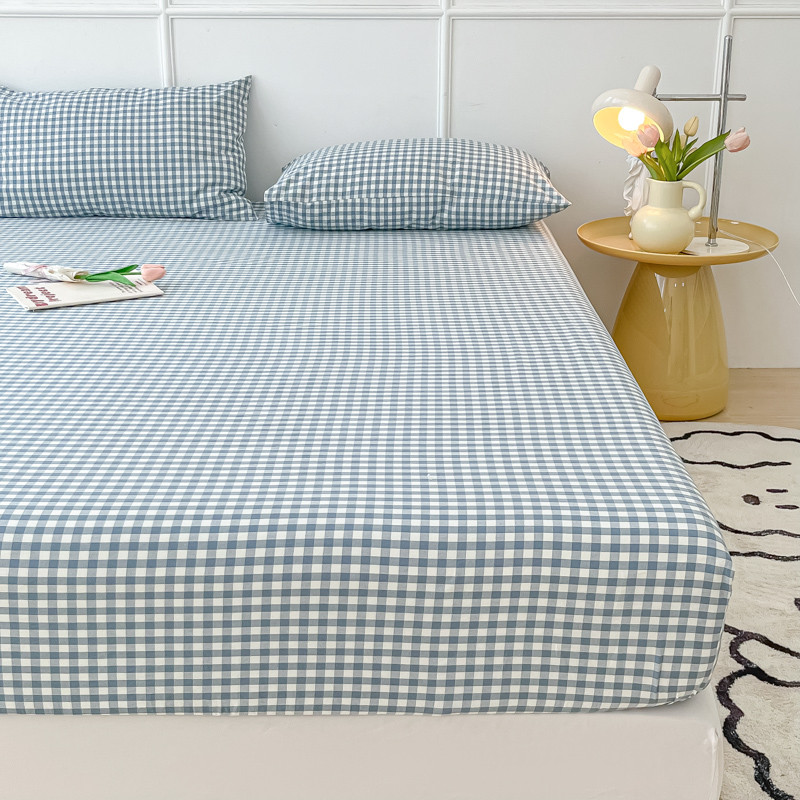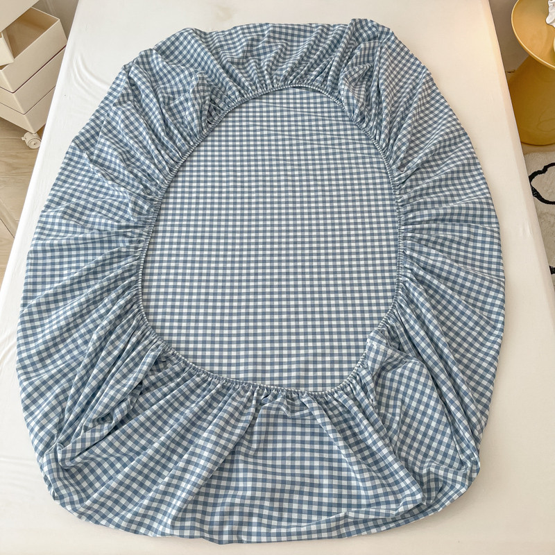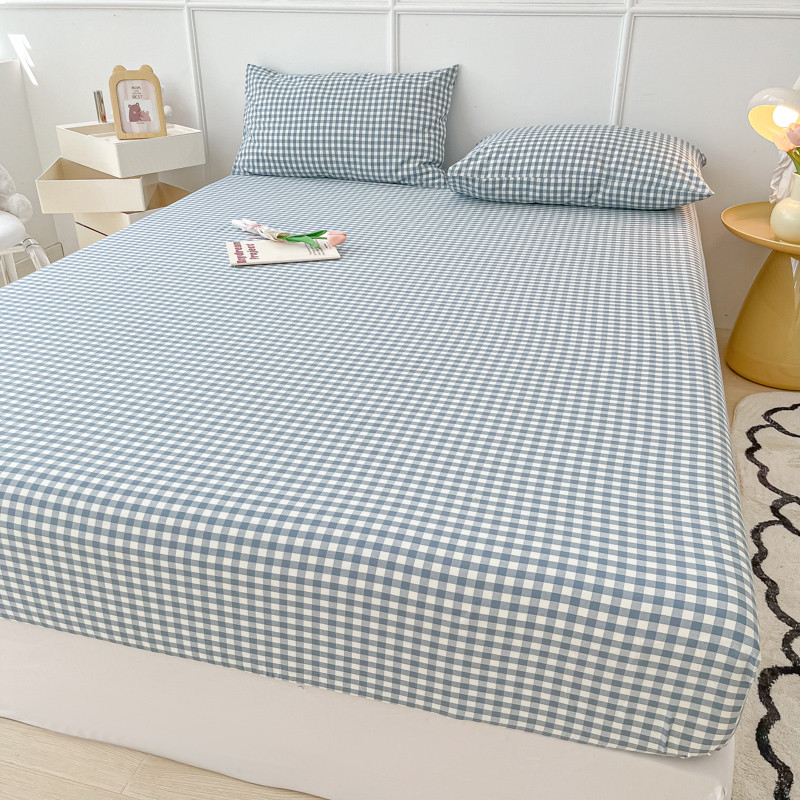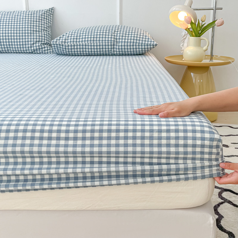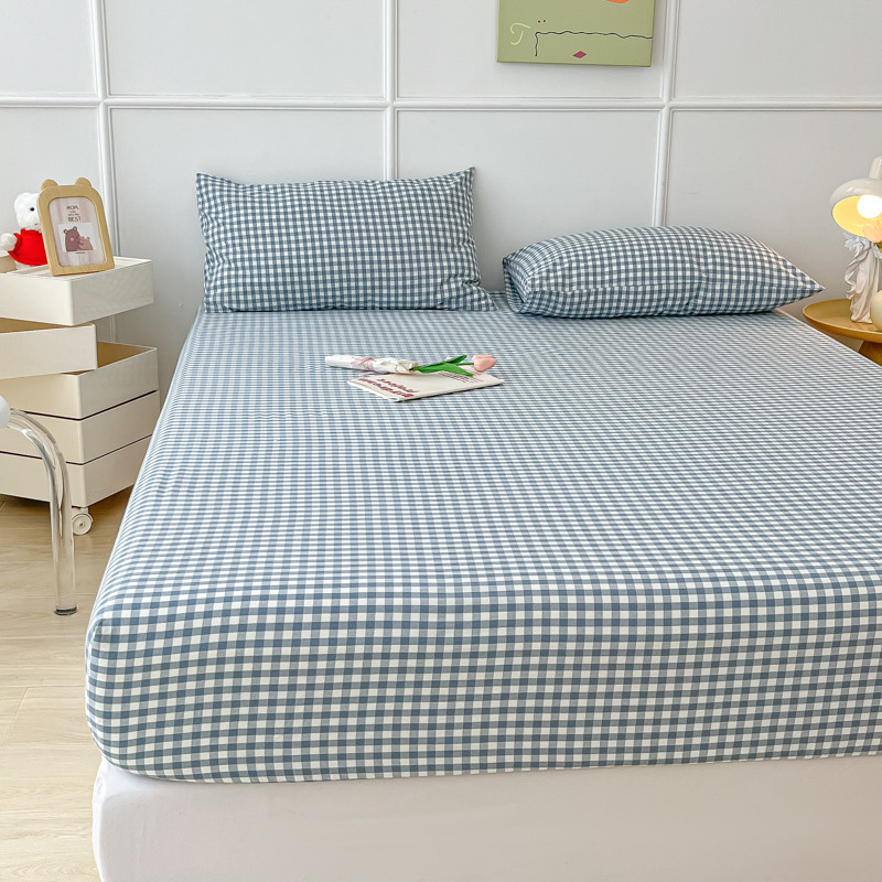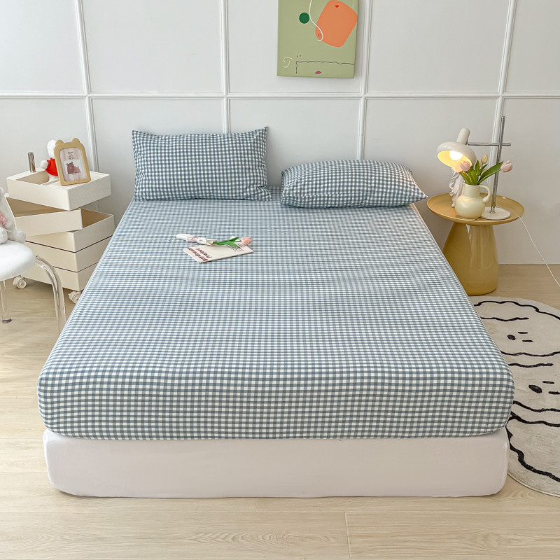 盼季 2023新款水洗棉床笠三件套防滑床罩席梦思全包围保护套 布丁蓝格