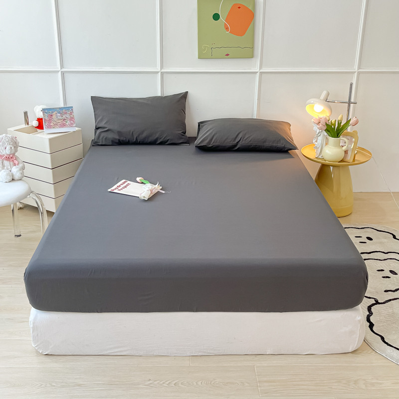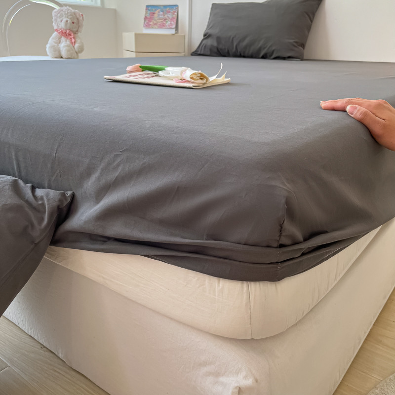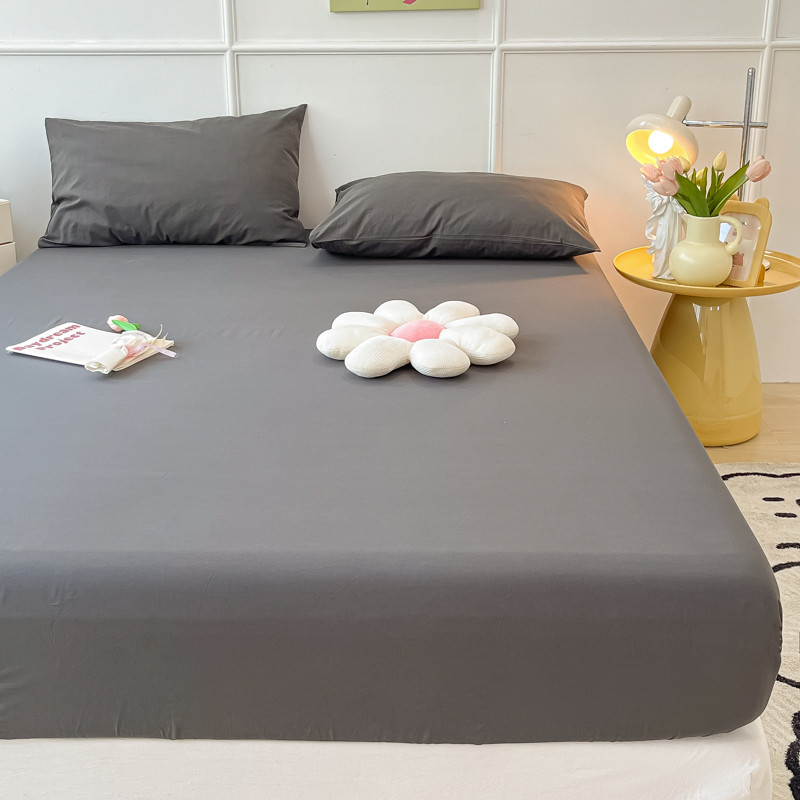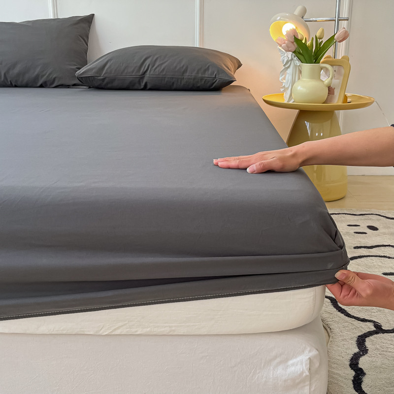 盼季 2023新款水洗棉床笠三件套防滑床罩席梦思全包围保护套 深灰