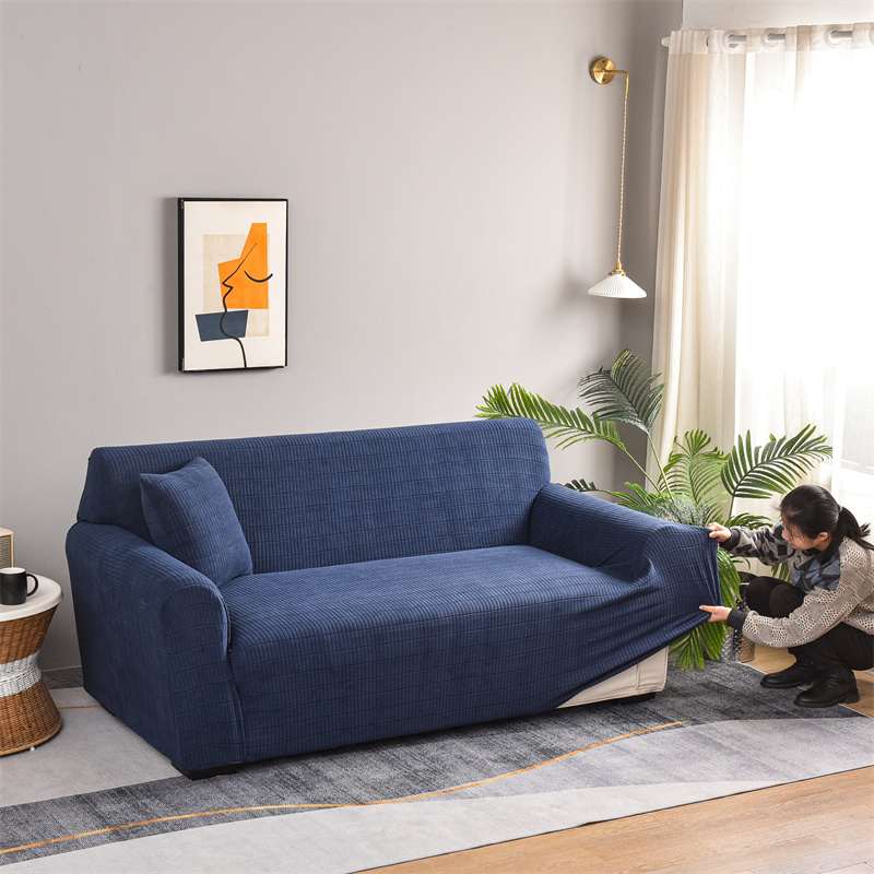四季鹿 2023新款格格绒沙发套三人沙发 藏蓝色