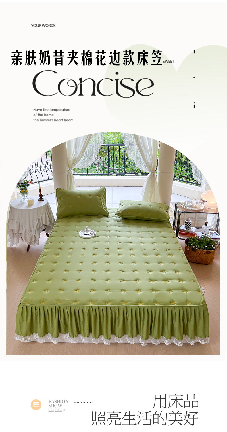 尊康家纺(原磊科) 2024新款亲肤奶昔棉夹棉床裙-风雅 风雅-奶白,风雅-奶白